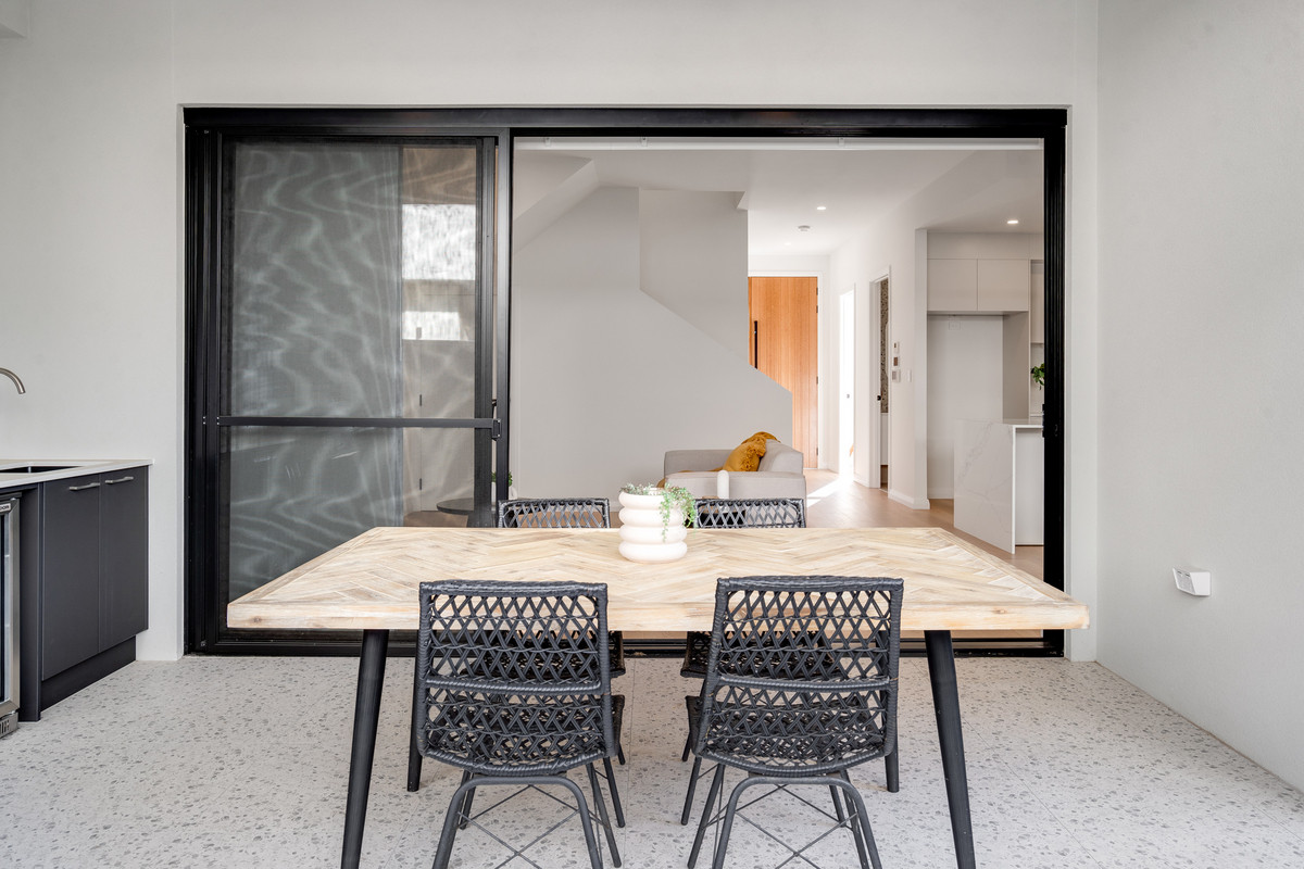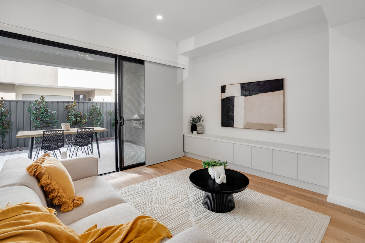 – Living area features built-in cabinetry and direct access to the outdoor entertaining area through large glass sliding doors