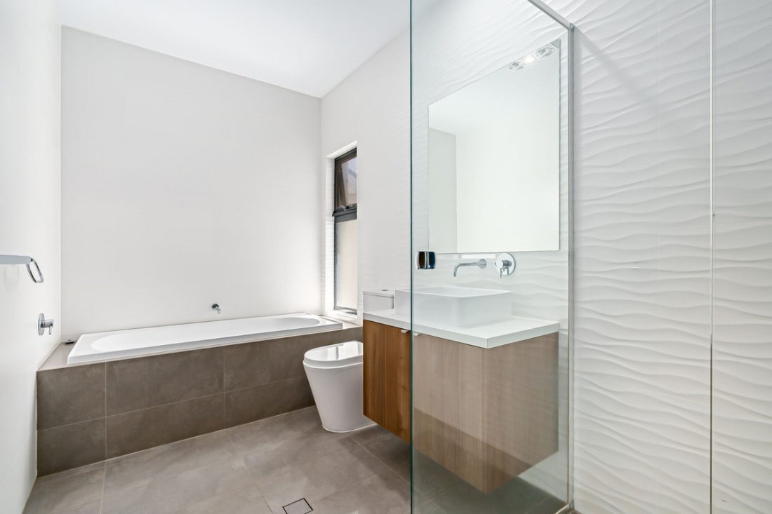 Bathrooms exude style with full-height tiles, quality tapware, and semi-frameless shower screens, while mirrors add a touch of luxury to the space. Low-maintenance landscaping, complete with neat paving and a patch of lawn, ensures your outdoor area is ready for entertaining without the hassle of upkeep.