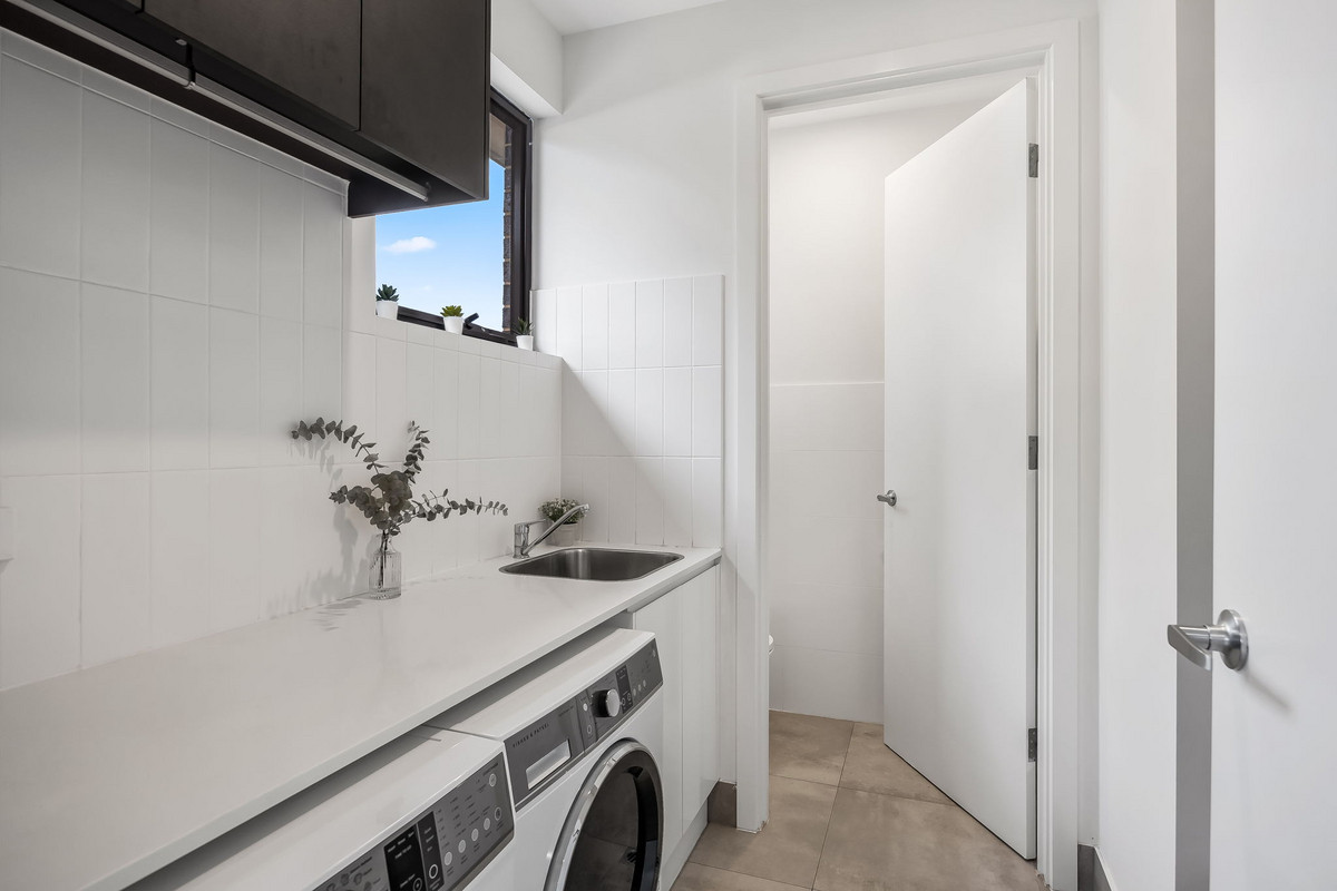 Back inside, the spacious laundry offers ample storage and benchtop space, along with the convenience of a downstairs wash closet. Upstairs, the master suite impresses with a walk-in robe, ensuite, while the additional bedrooms are fitted with built-in robes and serviced by a stylish main bathroom complete with bathtub and modern finishes.