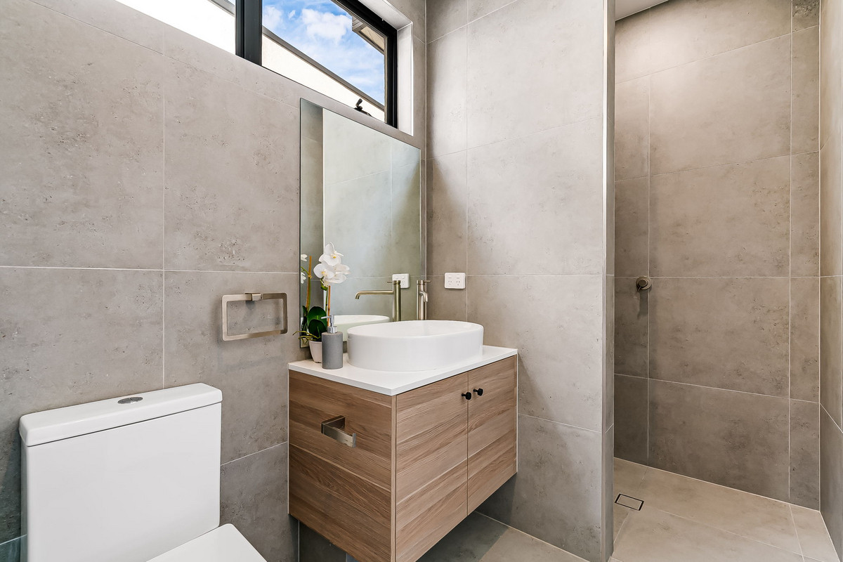 Upstairs, you’ll find three generously sized bedrooms, each adorned with plush carpeting, built-in storage, and bathed in natural sunlight. The master suite is a true retreat, featuring a private balcony, a luxurious walk-in robe, and a pristine ensuite with floor-to-ceiling tiles, a walk-in shower, and a stylish floating vanity. The main bathroom mirrors these impeccable finishes, plus a freestanding bath for a luxurious soak.