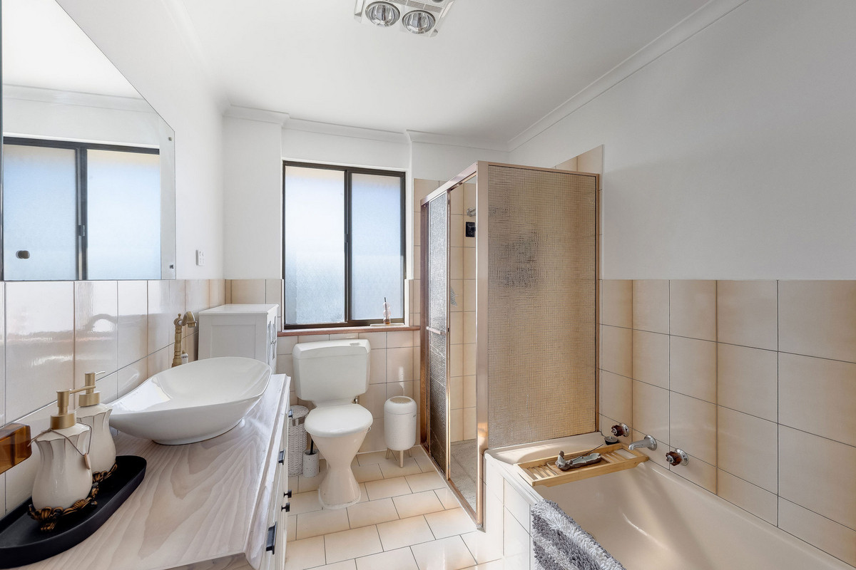 Upstairs, two well-sized bedrooms provide comfortable retreats, both fitted with plush carpet and built-in wardrobes. The main bathroom is equipped with a shower, bathtub, toilet and an updated vanity – neat, functional, and ready to go.
