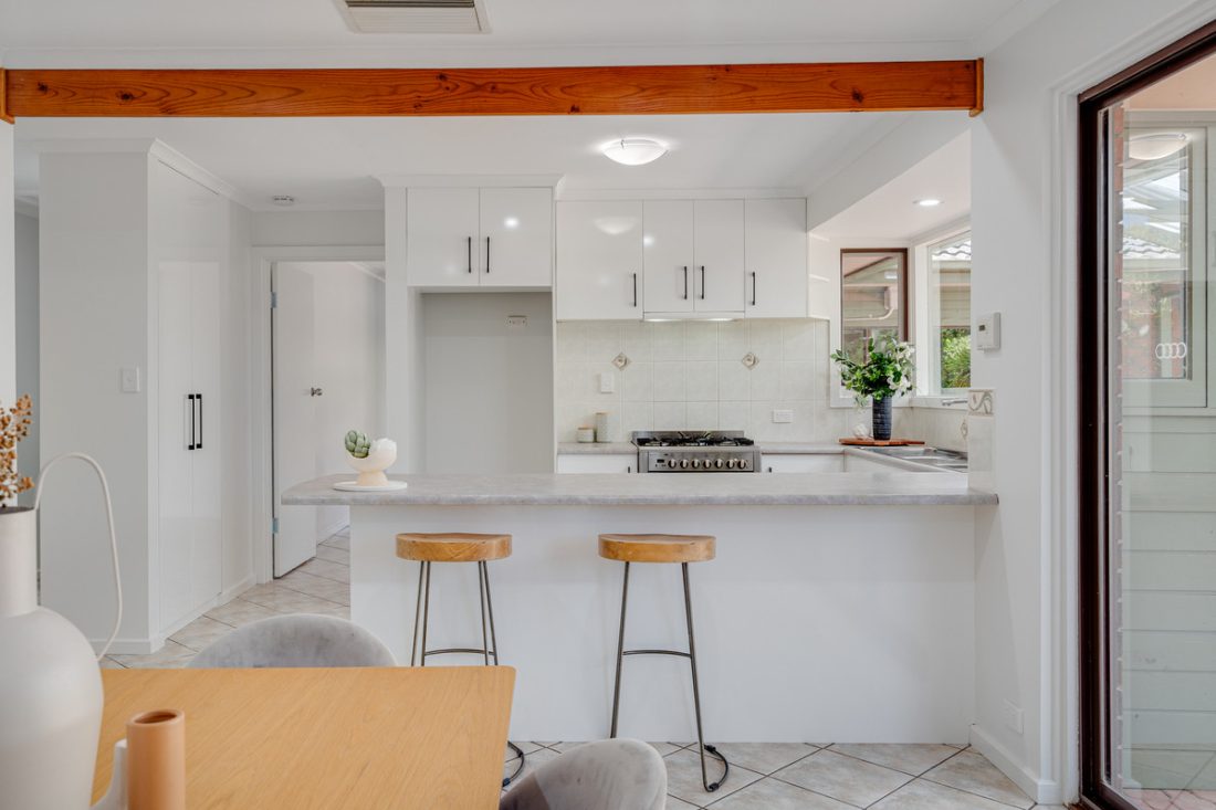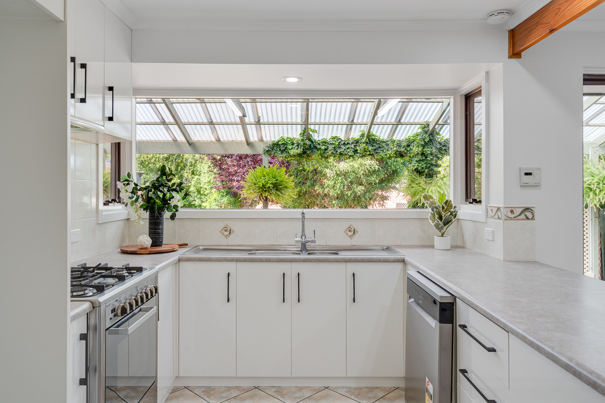 – Renovated kitchen features ample bench space, tiled backsplash, stainless steel appliances including a gas cook-top, breakfast bar with room for bar seating and an oversized window that invites a leafy view in