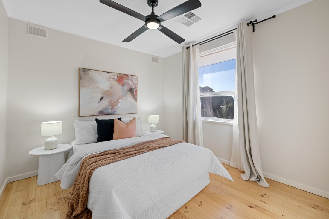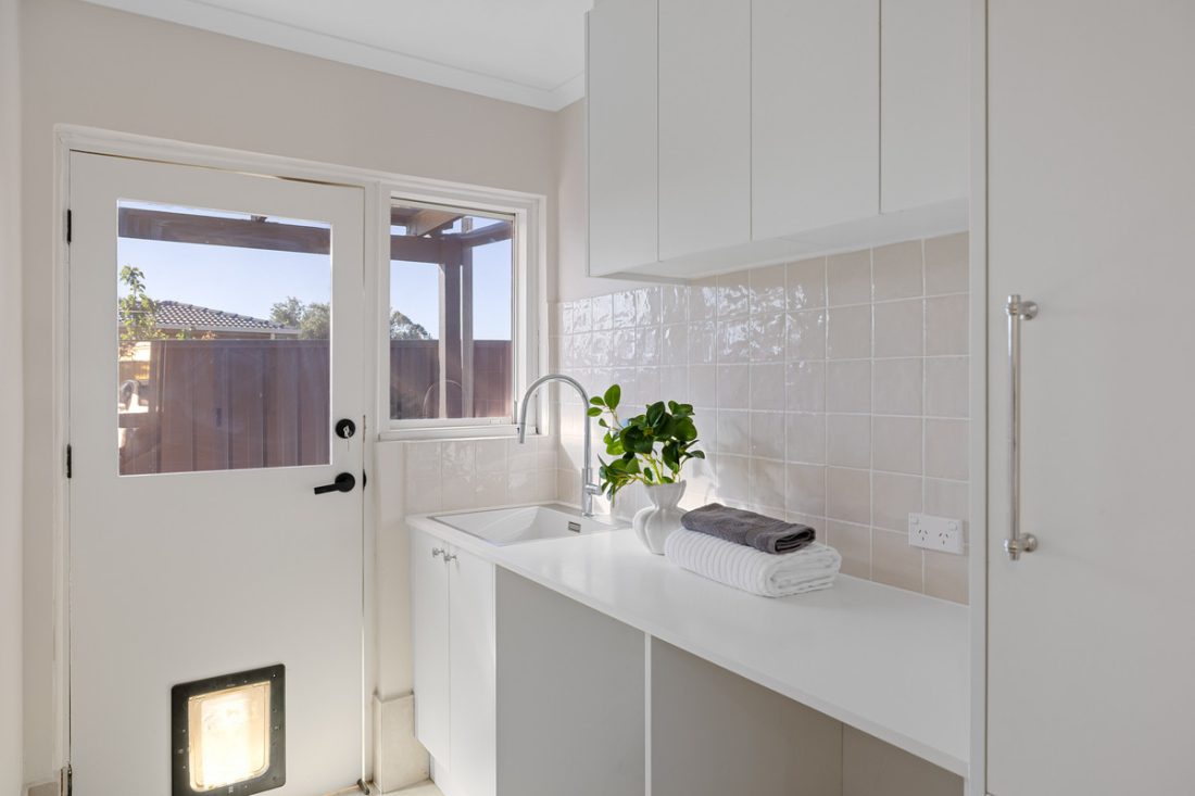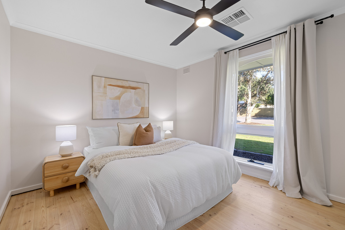 Three comfortable bedrooms each feature ceiling fans, with two offering built-in robes, all serviced by a tastefully renovated bathroom. An updated laundry with outdoor access adds to the home’s practicality.