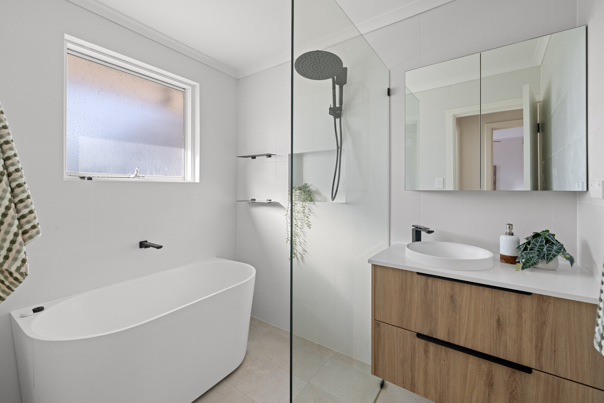 – Beautifully renovated bathroom features floor-to-ceiling tiles, luxurious bath-tub and frameless shower screen