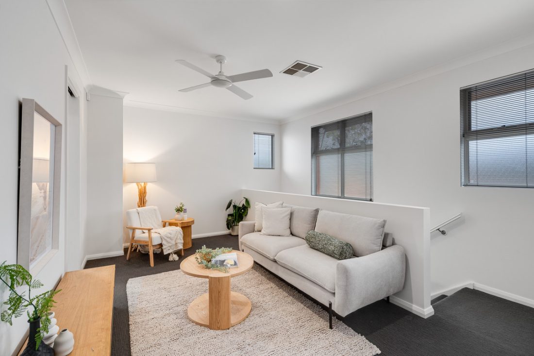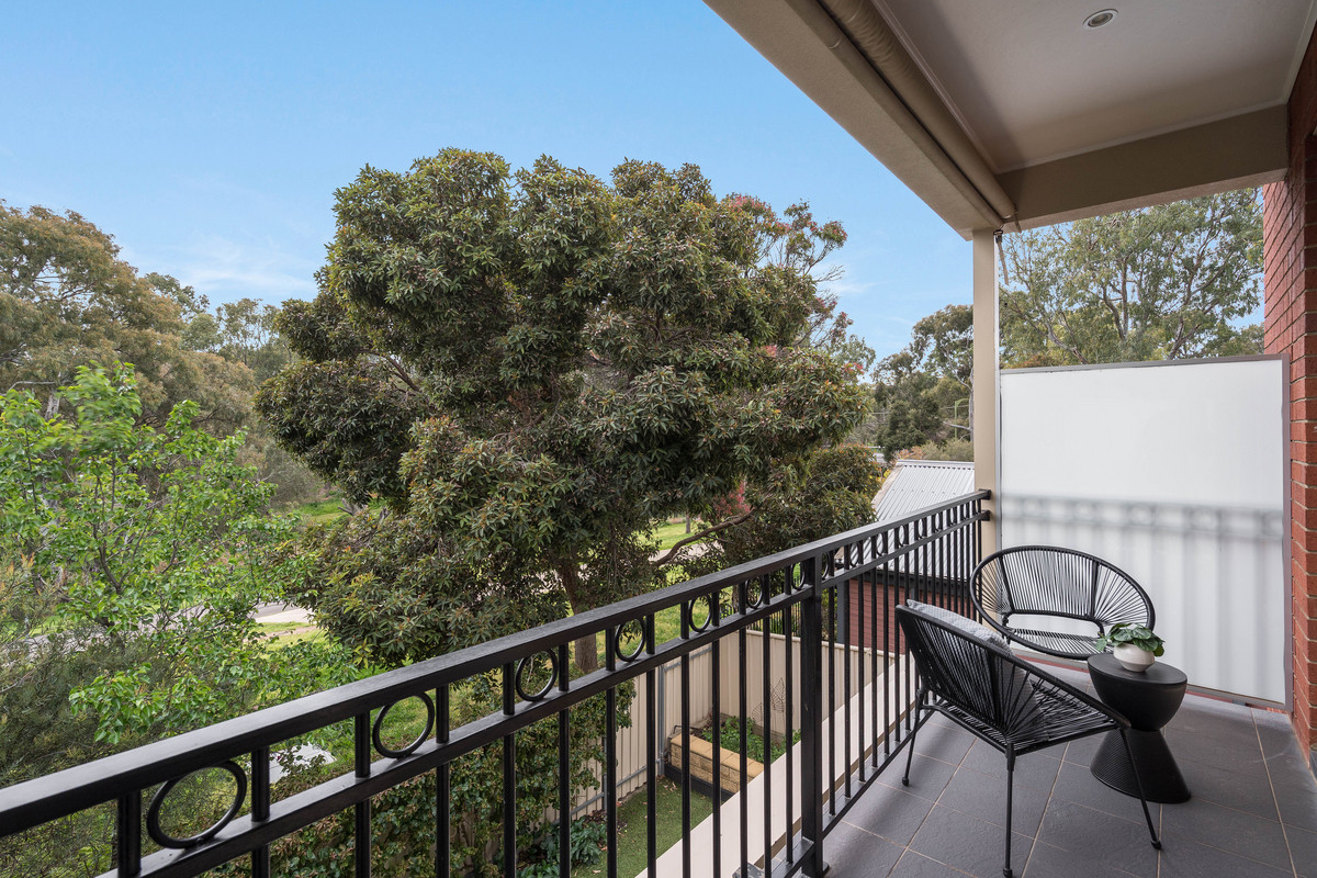 Upstairs, a second lounge with plush carpet creates another zone to unwind, while two spacious bedrooms with walk-in robes share a well-appointed bathroom with full bathtub and separate wash closet. Both bedrooms open to a private balcony overlooking Linear Park—an enviable spot to soak up the leafy views.