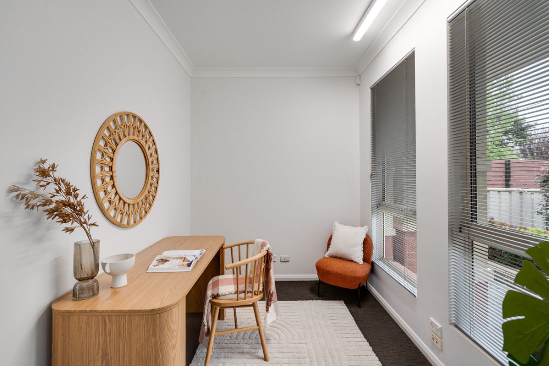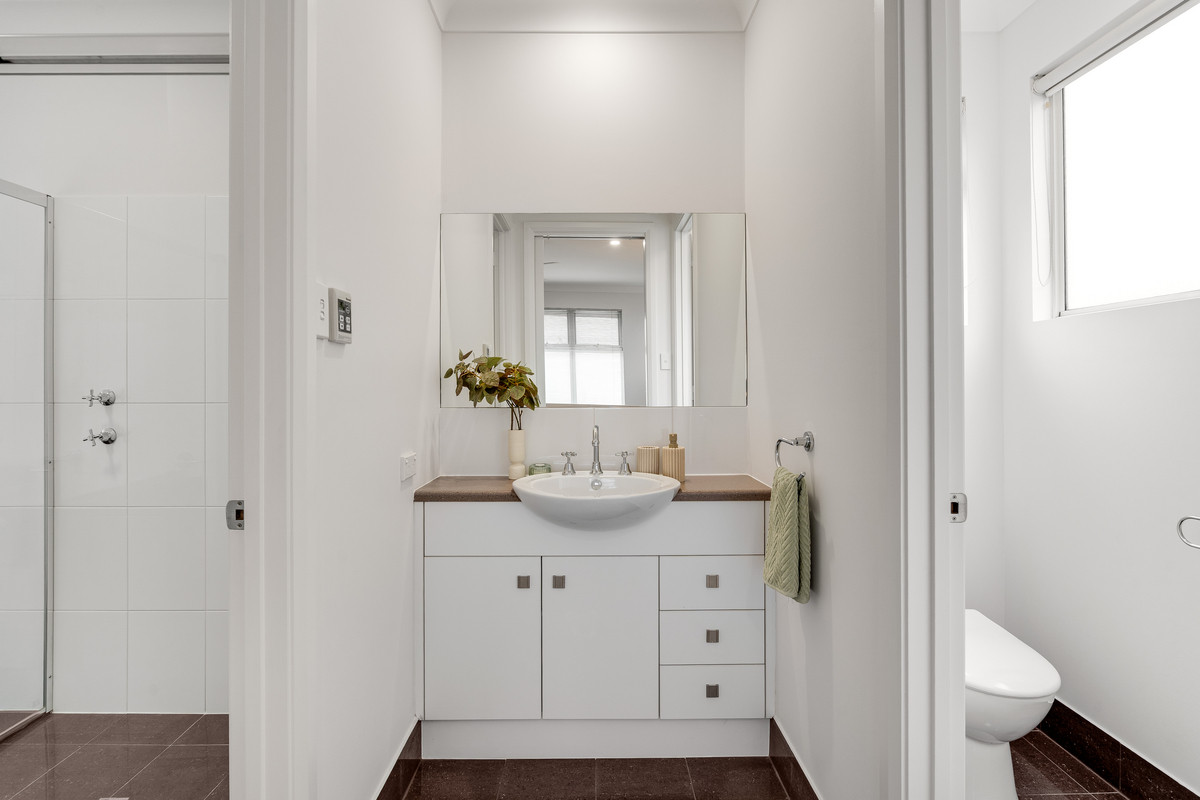 The ground floor also plays host to the master suite with its own walk-in robe, serviced by a main bathroom featuring a double vanity and large shower. A handy study and laundry complete the lower-level floorplan.