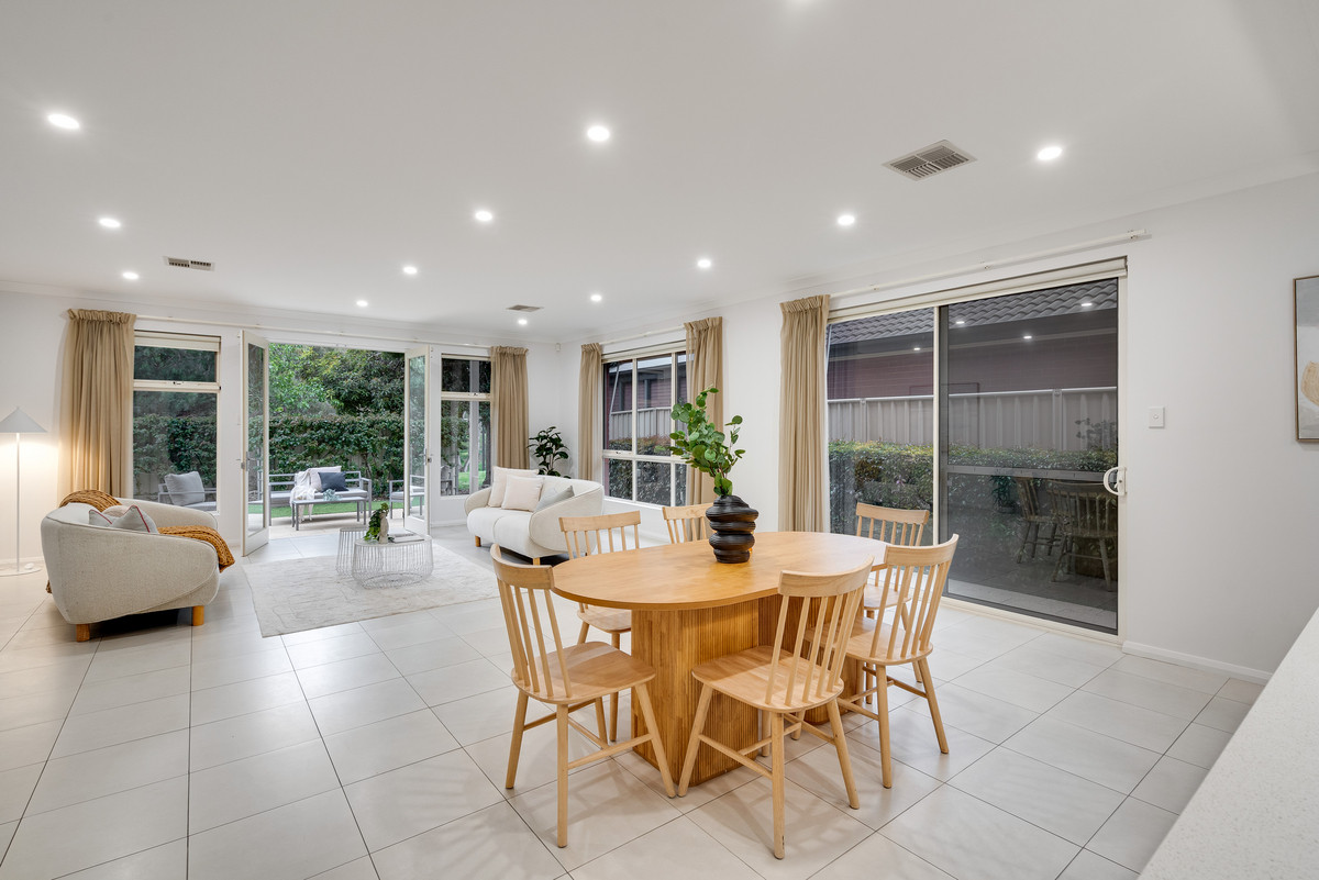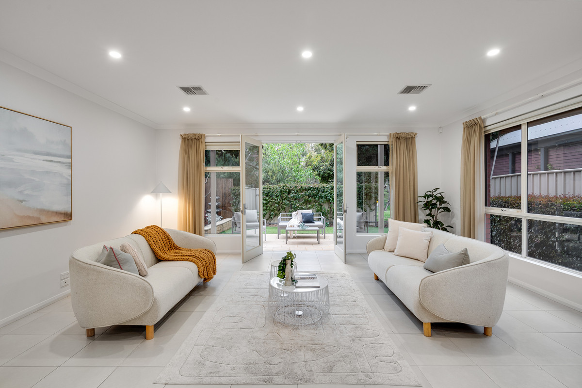 Down the hallway, a sun-drenched lounge sets the tone for relaxed living, where glass doors frame the private courtyard. Here, morning coffees, weekend BBQs, or evening catch-ups with friends become effortless—made even better with direct access to the trail. A well-kept backyard adds space for kids and pets to play freely.