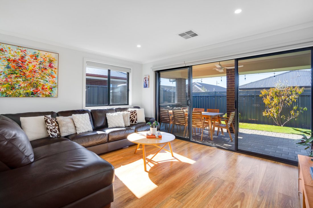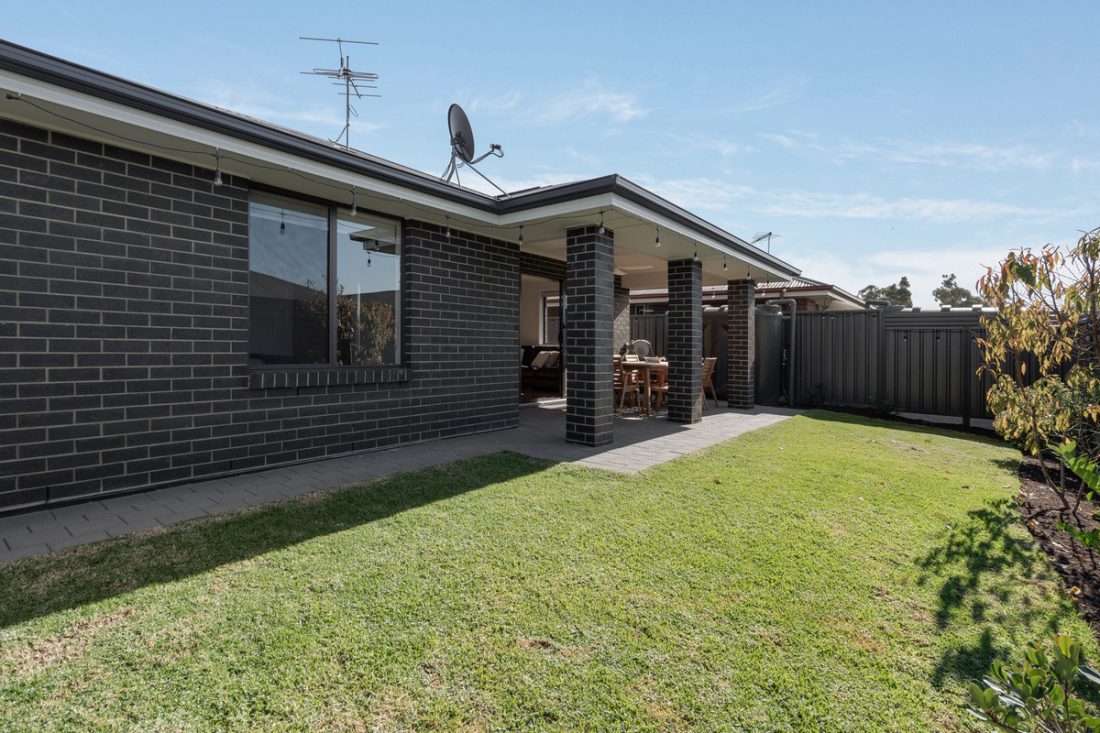 The well-sized yard is perfect for entertaining, featuring a spacious undercover alfresco area with a ceiling fan and provisions for gas and plumbing, as well as a neat stretch of lawn – ideal for children and pets.
