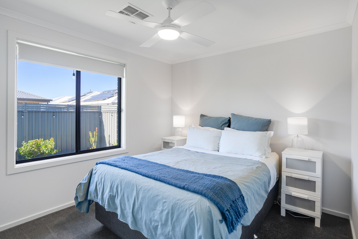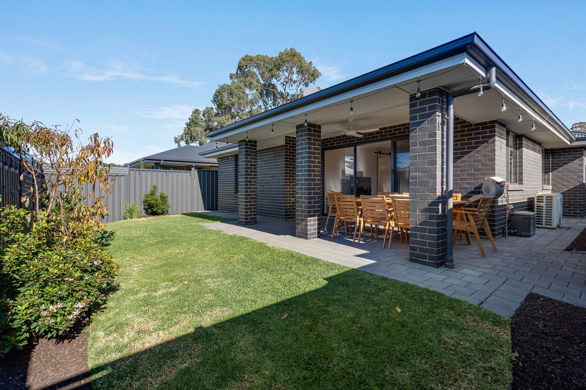 The well-sized yard is perfect for entertaining, featuring a spacious undercover alfresco area with a ceiling fan and provisions for gas and plumbing, as well as a neat stretch of lawn – ideal for children and pets.