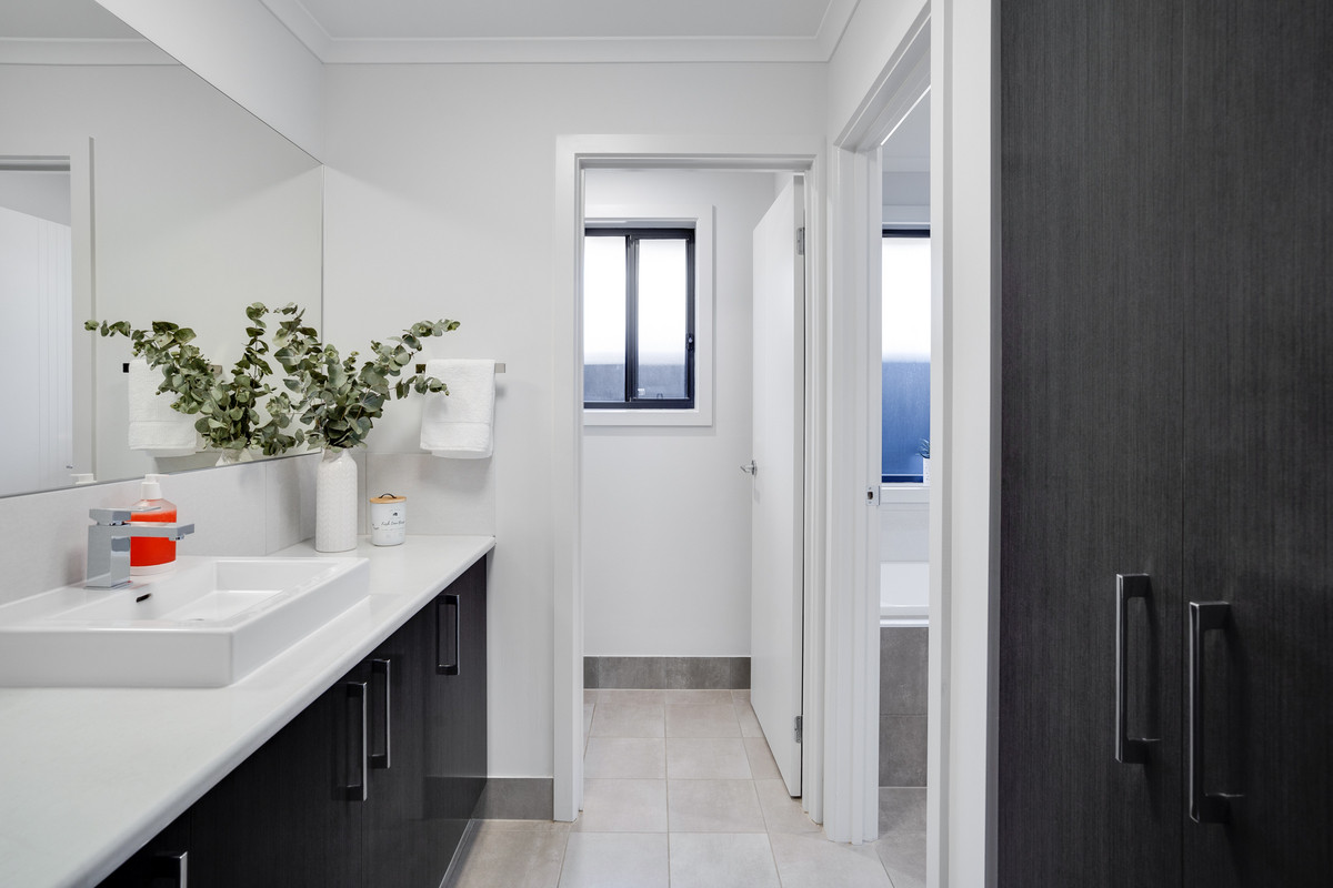 The remaining bedrooms at the rear of the home, partitioned by a charming barn door, come equipped with built-in robes for convenient storage. Servicing these bedrooms is the main bathroom, thoughtfully designed with a 3-way layout including a built-in bath, shower, and a seperate water closet for added convenience and privacy.