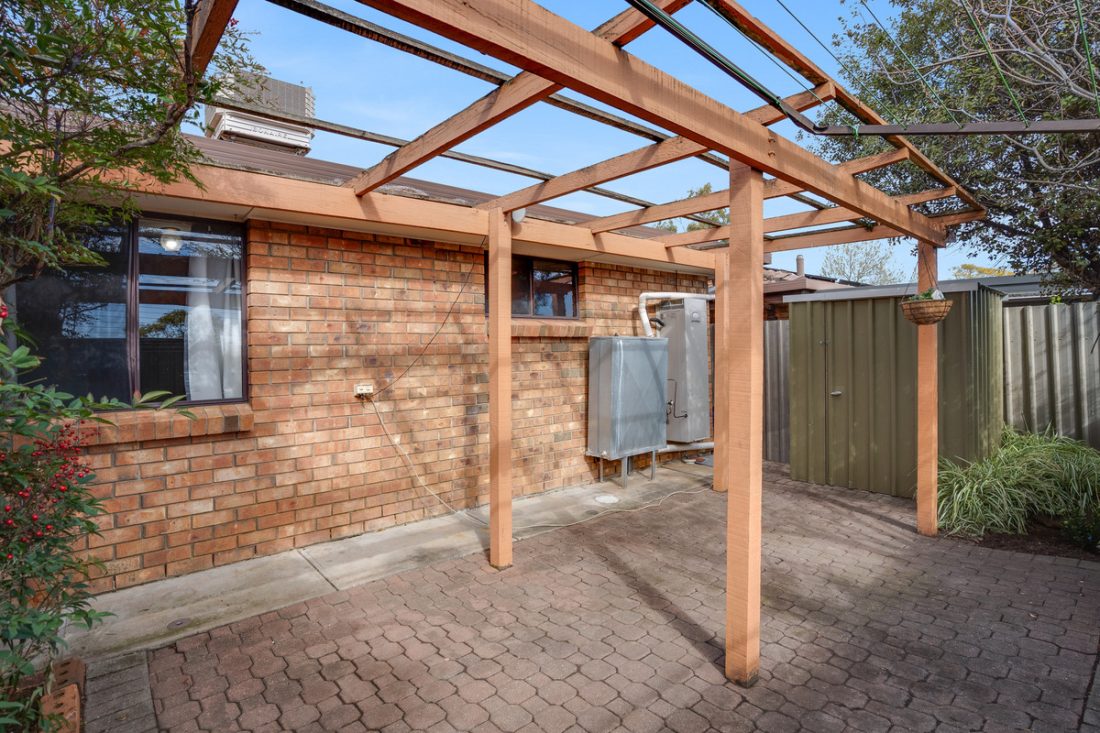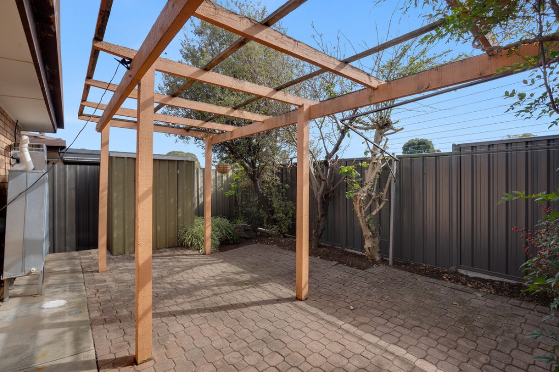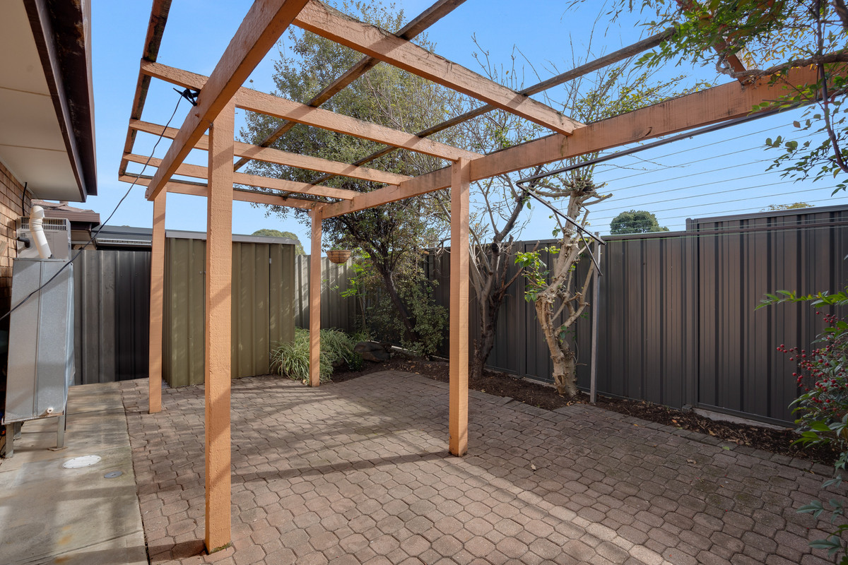 Outside, enjoy a charming low-maintenance paved courtyard with a pergola, perfect for entertaining and soaking up the sunshine.