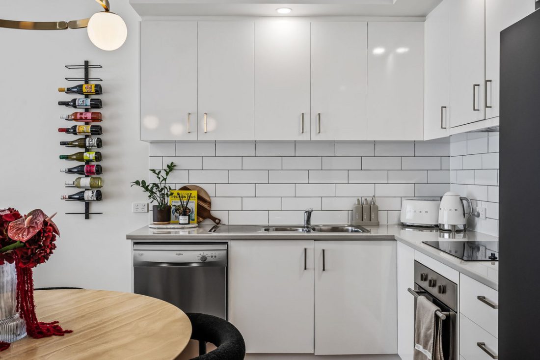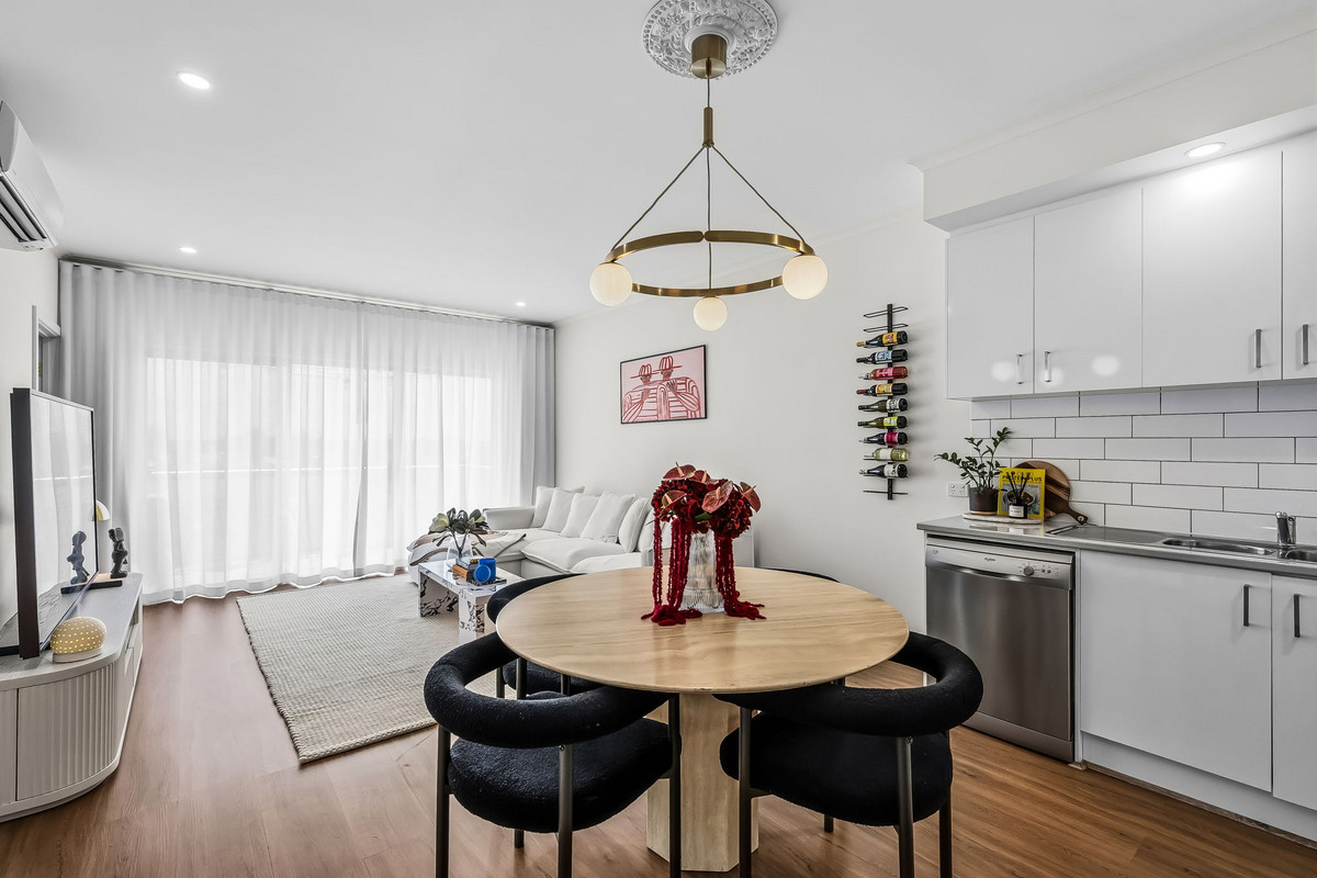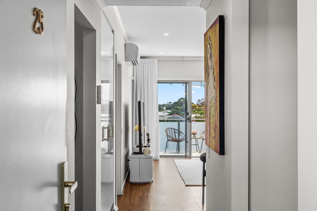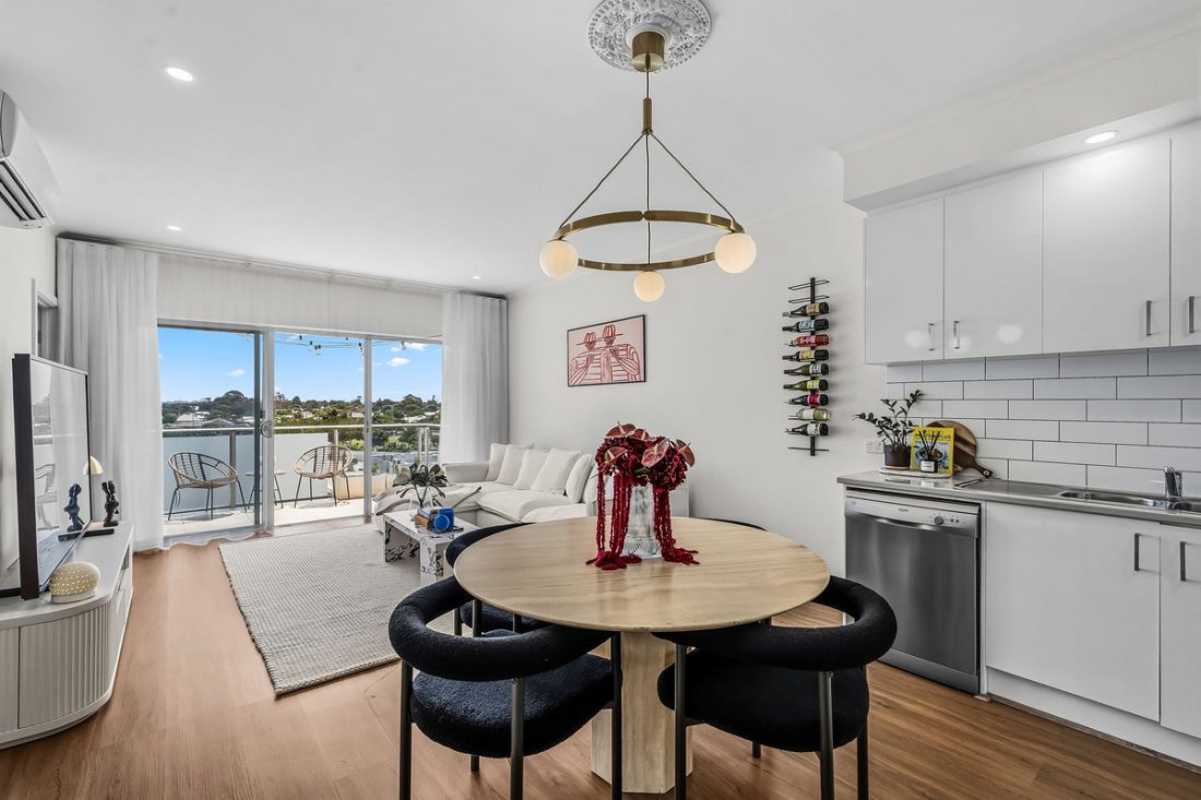 From the living area, glass sliding doors open onto a generously sized balcony that’s perfect for entertaining, unwinding, or soaking in those elevated street views.