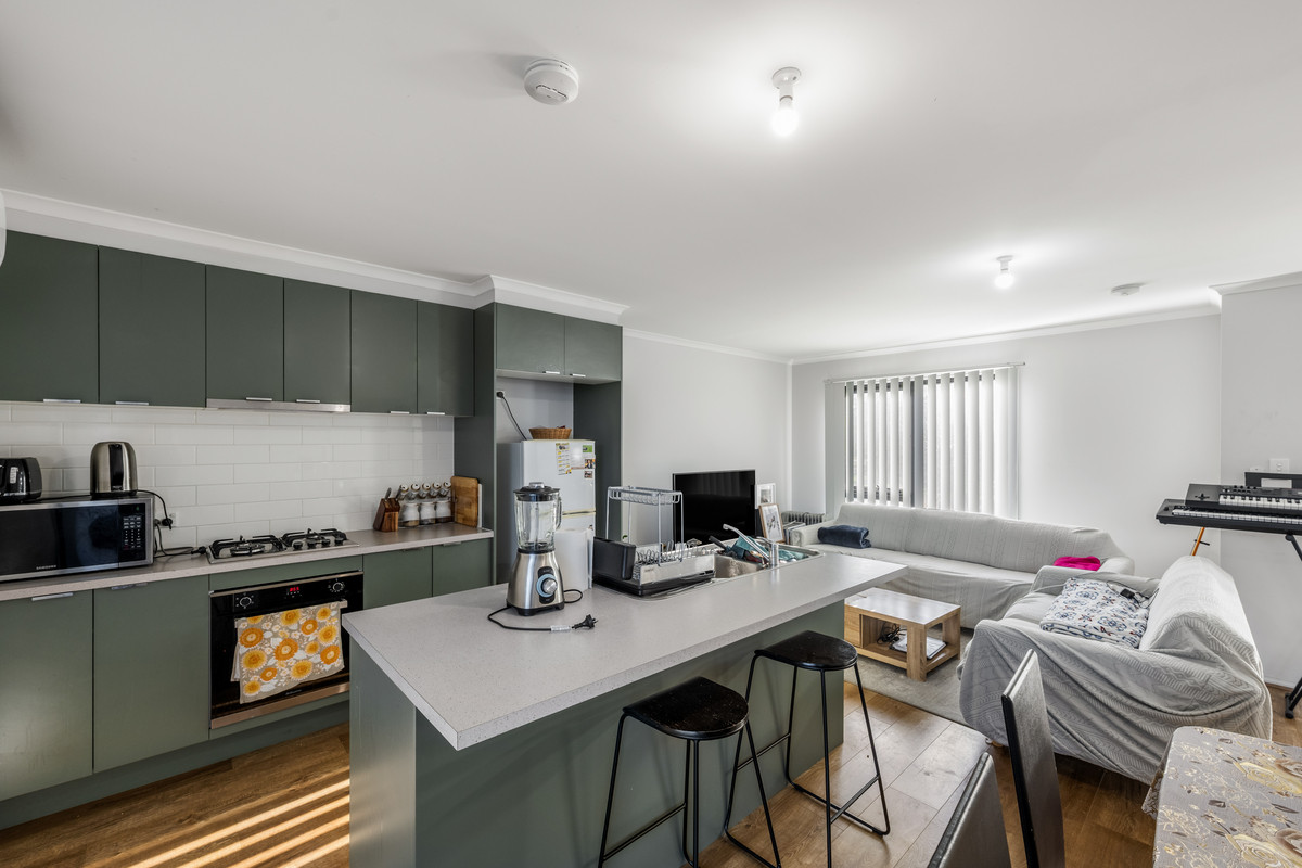 Step inside from the front porch into a light-filled open plan kitchen, living and dining area, designed for everyday comfort and connection. The kitchen is well equipped with a dishwasher, oven, cooktop and double sink, all centred around an island bench that’s perfect for casual meals, morning coffees or a quick chat before heading out the door.