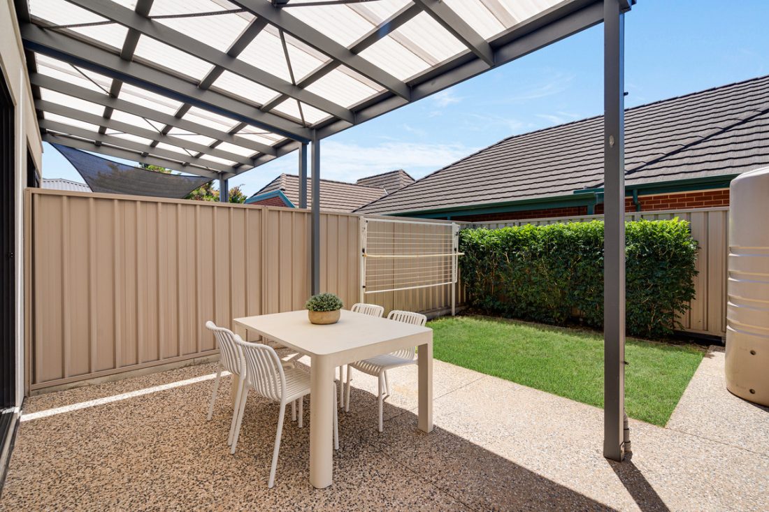 Sliding doors open to a relaxed alfresco zone, ready for summer catch-ups and weekend BBQs. An undercover verandah with stylish aggregate concrete overlooks a neat lawn, creating a low-fuss outdoor space that still gives you room to unwind.