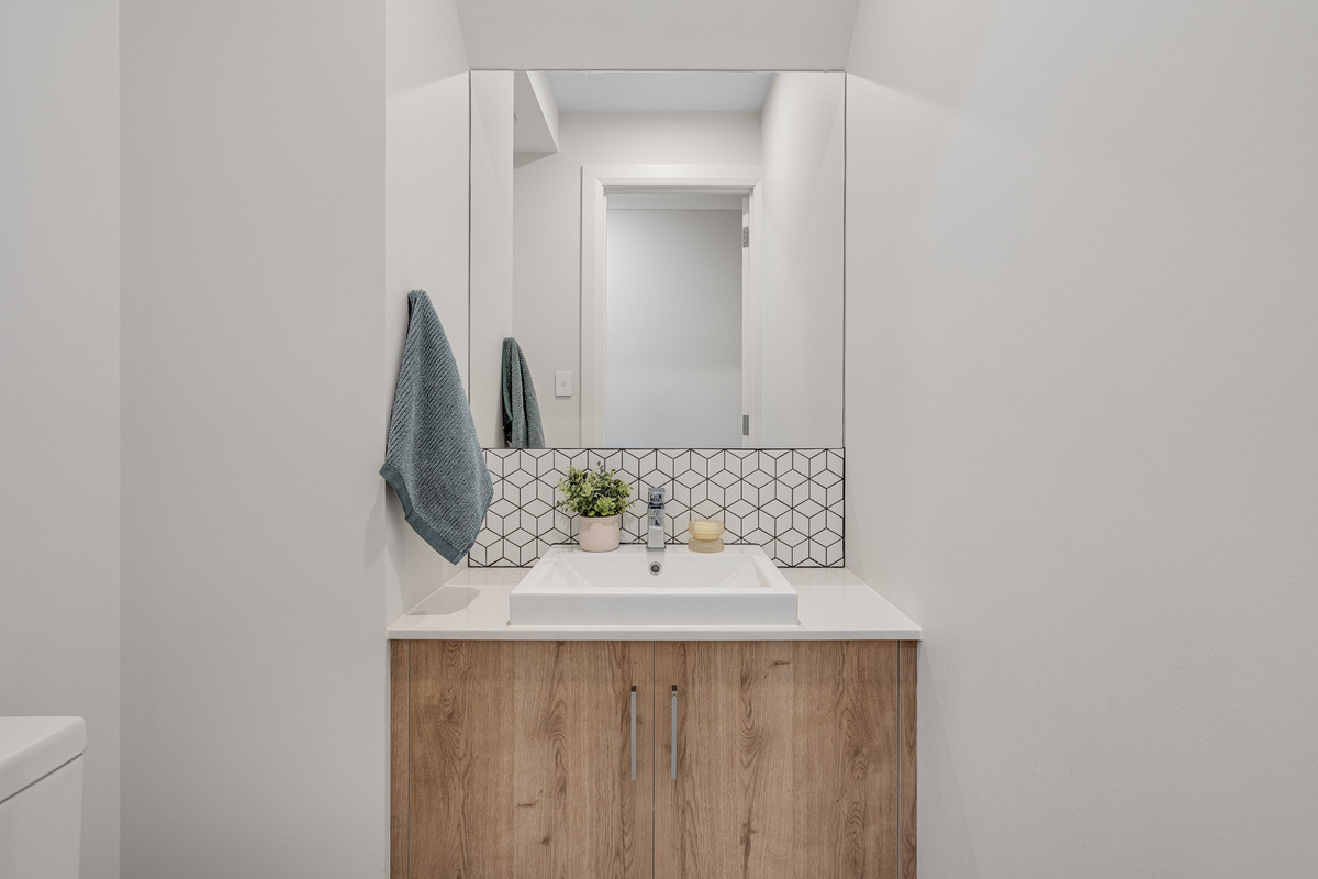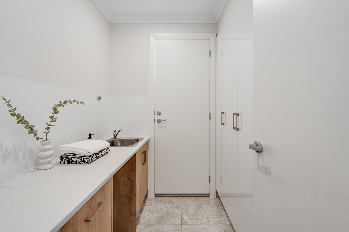 Sliding doors open to a relaxed alfresco zone, ready for summer catch-ups and weekend BBQs. An undercover verandah with stylish aggregate concrete overlooks a neat lawn, creating a low-fuss outdoor space that still gives you room to unwind.