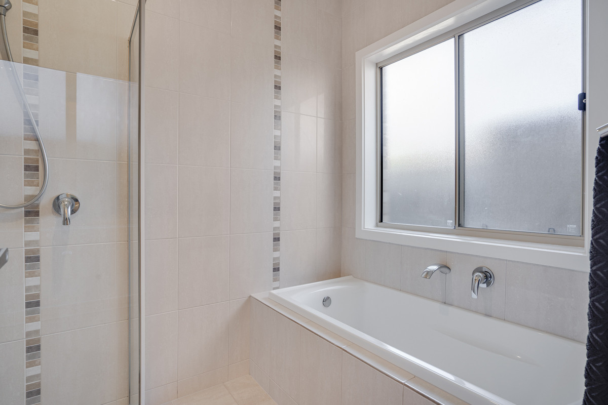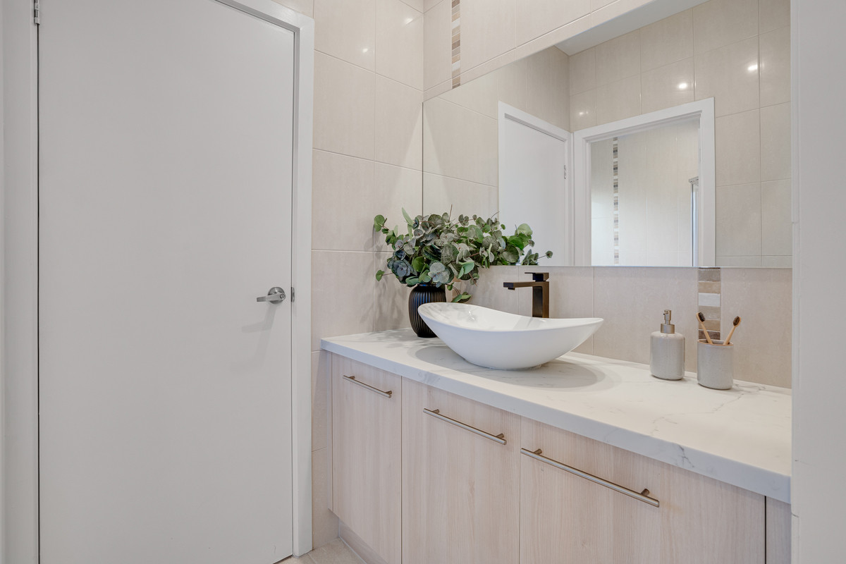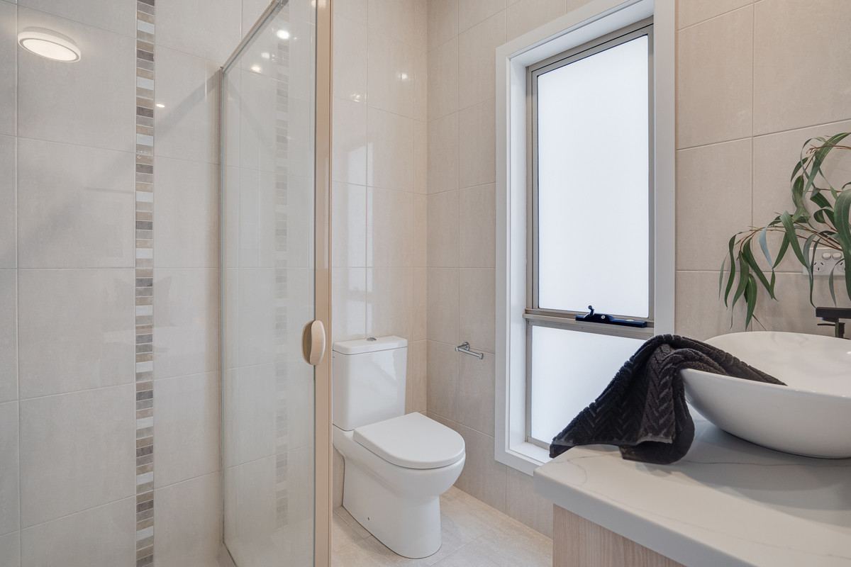 The main bathroom is thoughtfully positioned and includes the same level of luxury finish as the ensuite plus a spacious built-in bath and a separate shower. A separate vanity and WC enhance privacy and convenience.