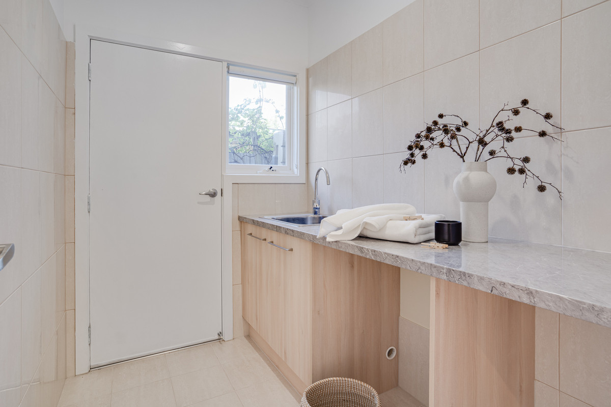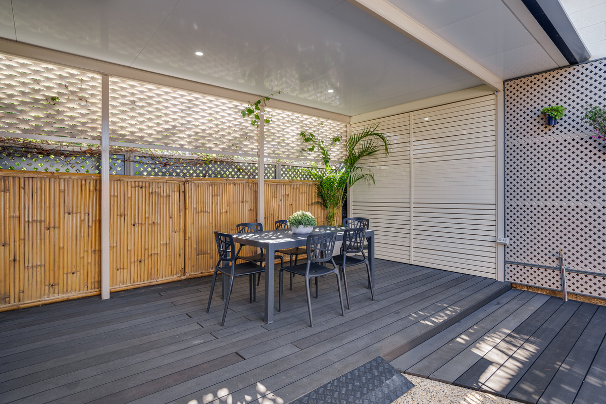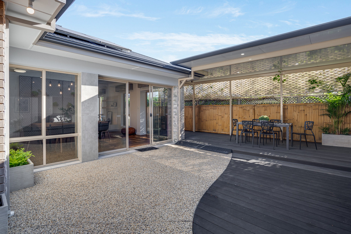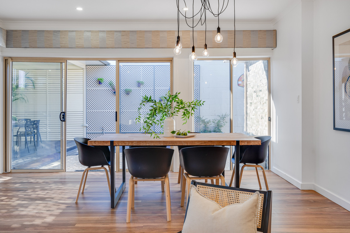 Natural light floods the living and dining area, thanks to glass sliding doors that lead to the outdoor entertaining area. Whether you’re hosting family events or simply enjoying a quiet evening, this space is perfect for both.