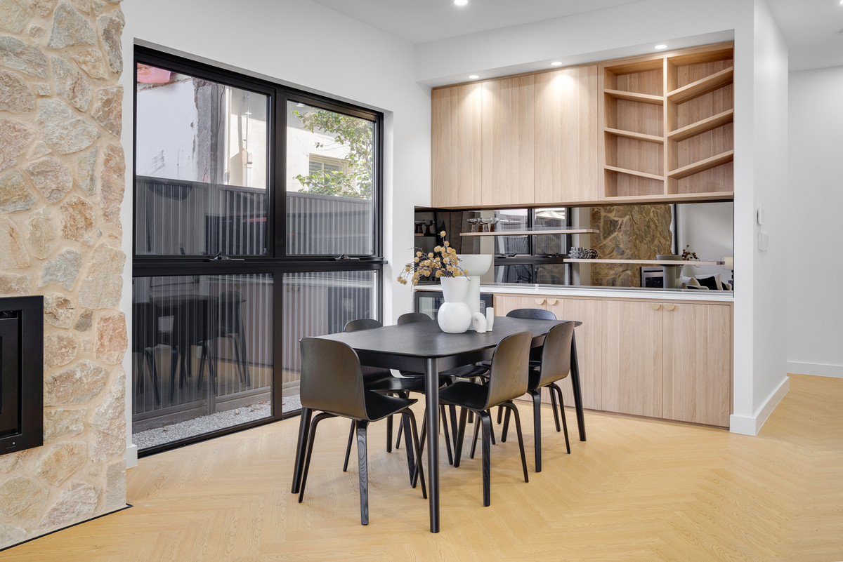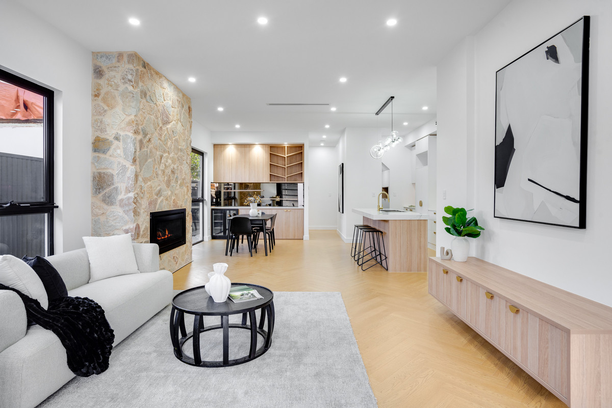 From the street, the home boasts charming curb appeal, with feature timber and stonework secured behind a privacy fence. As you step inside, you are welcomed by soaring 3-metre ceilings, stylish herringbone flooring, and an abundance of natural light pouring in from large windows, setting the tone for this beautifully detailed residence.