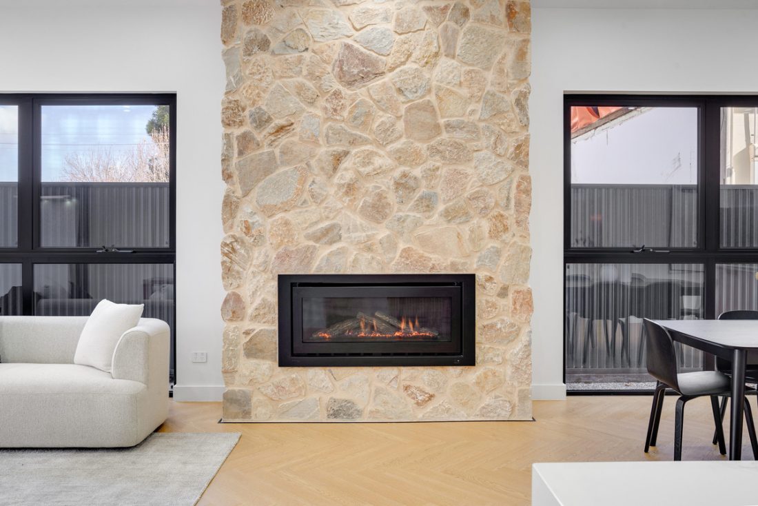 – Feature stone gas heater, additional shelving and cabinetry, inbuilt fridge