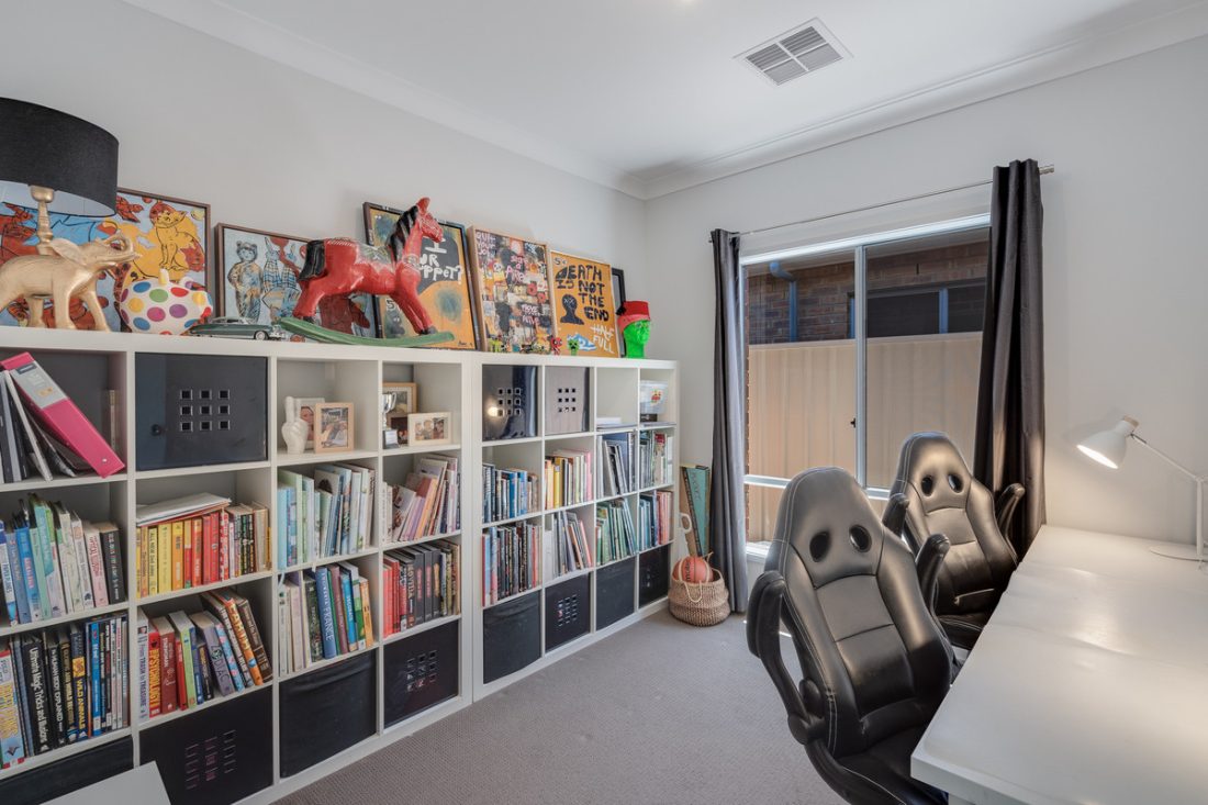 Completing the floor-plan is a versatile secondary living space off the hallway, offering an ideal spot for the kids or a cozy movie night. From here, step outside to a cozy courtyard—a low-maintenance space perfect for enjoying a quiet moment in the fresh air.