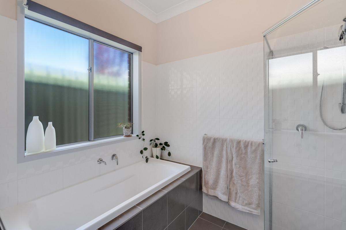 Back inside, you’ll find four generously sized bedrooms, all with plush carpeting. The master bedroom, separated at the front of the home for added privacy, offers a walk-in robe and ensuite, creating a true retreat. The additional bedrooms feature built-in robes for convenient storage.