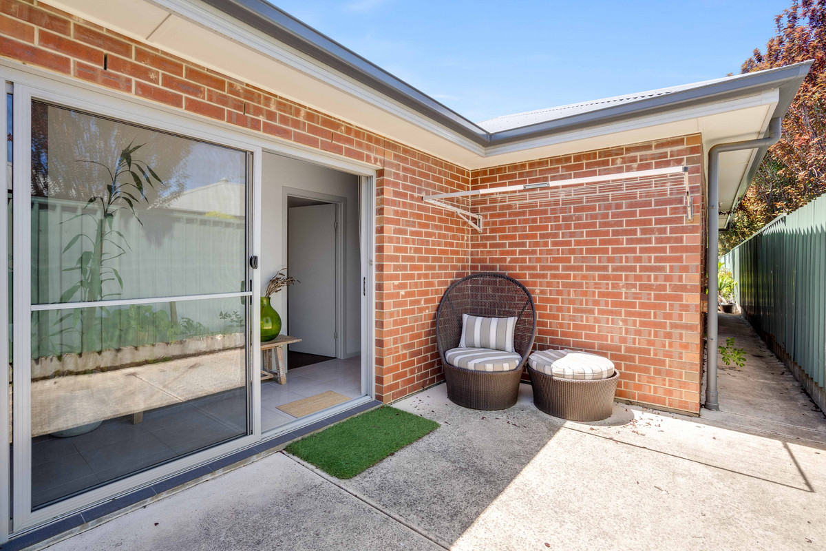 Completing the floor-plan is a versatile secondary living space off the hallway, offering an ideal spot for the kids or a cozy movie night. From here, step outside to a cozy courtyard—a low-maintenance space perfect for enjoying a quiet moment in the fresh air.