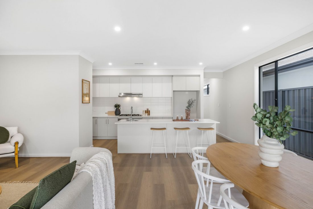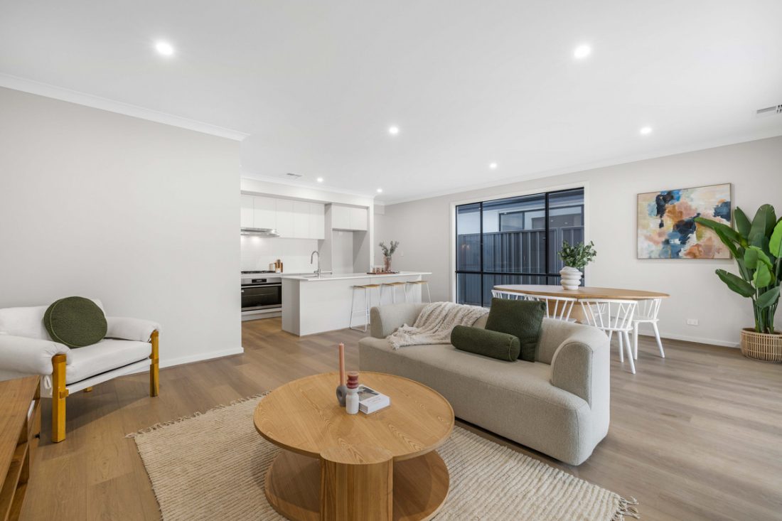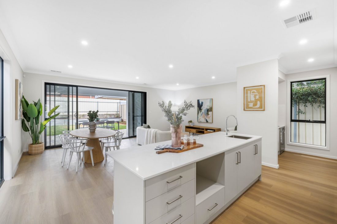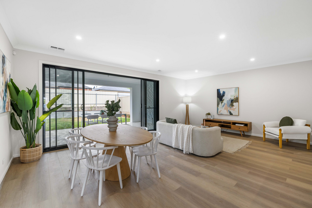 Step inside and discover the heart of the home: a light-filled, open-plan living area anchored by a sleek, modern kitchen. Premium features include a butler’s pantry, stone benchtops, and stainless steel appliances. The open-plan space flows effortlessly through wide sliding doors to an undercover alfresco area, perfect for entertaining or enjoying quiet afternoons.