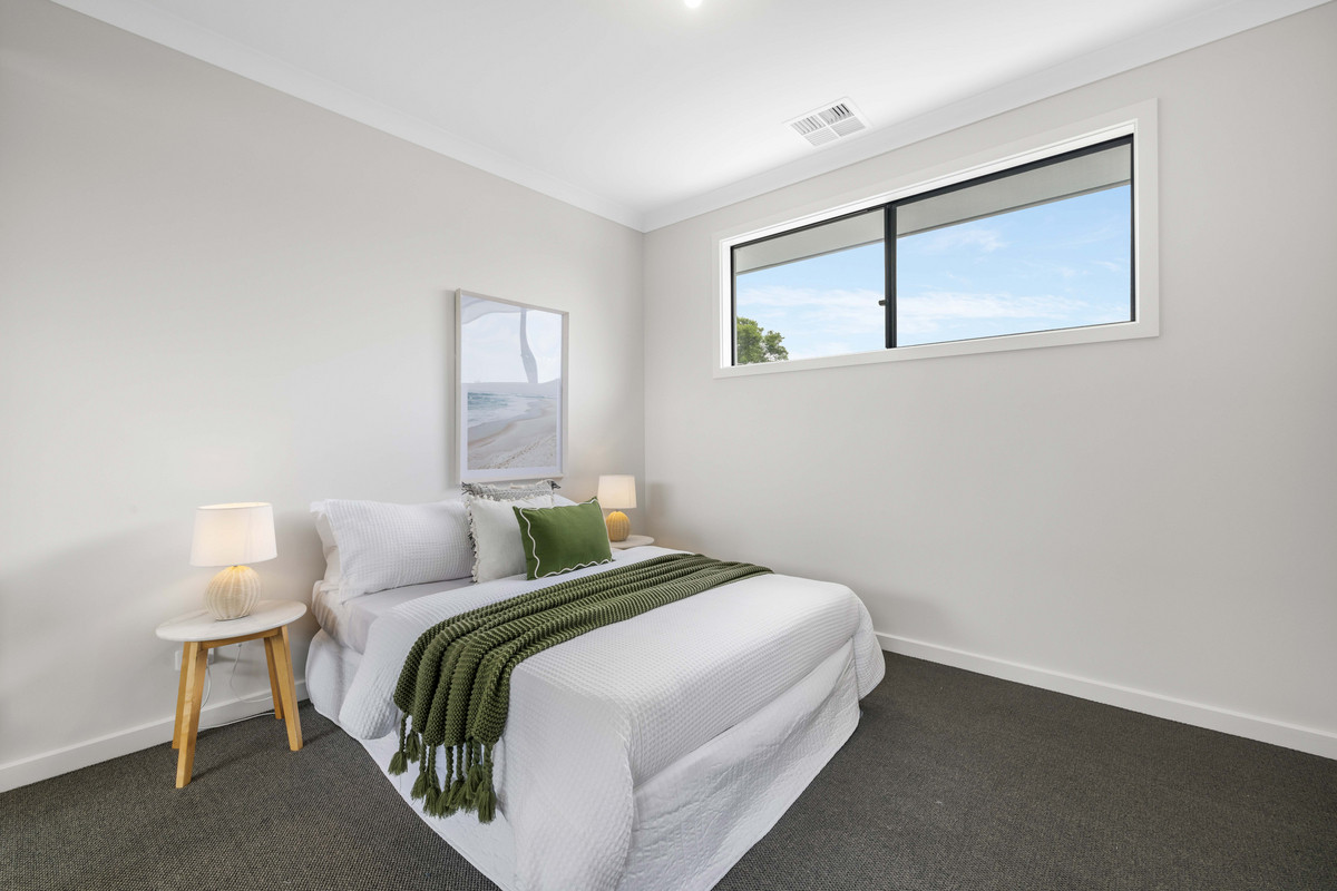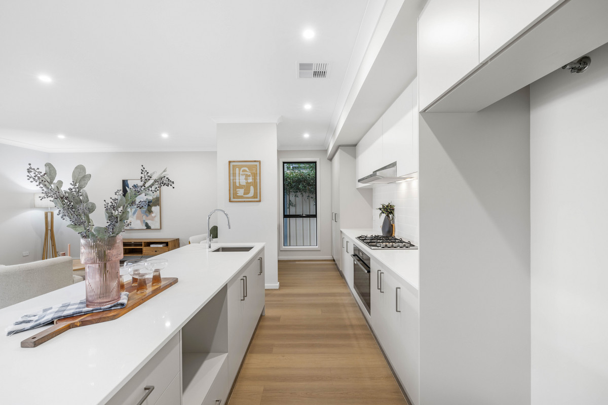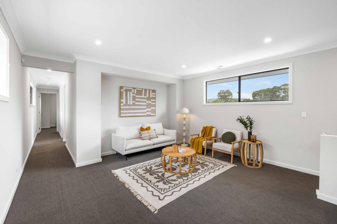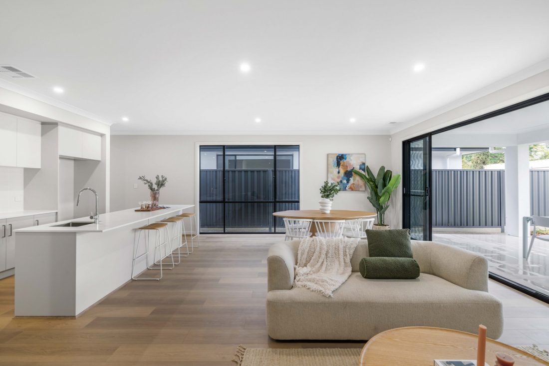 Step inside and discover the heart of the home: a light-filled, open-plan living area anchored by a sleek, modern kitchen. Premium features include a butler’s pantry, stone benchtops, and stainless steel appliances. The open-plan space flows effortlessly through wide sliding doors to an undercover alfresco area, perfect for entertaining or enjoying quiet afternoons.