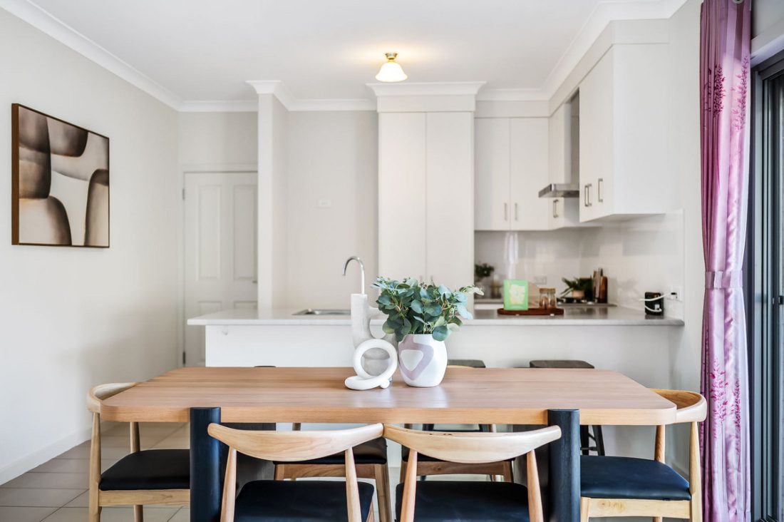 As you arrive, the striking rendered façade and neatly landscaped front yard create an inviting first impression. Inside, at the heart of the home lies an open-plan kitchen, meals and living area, a functional and welcoming space featuring tiled floors, large windows, and sliding doors that open seamlessly to the outdoors—perfect for entertaining or everyday family life.