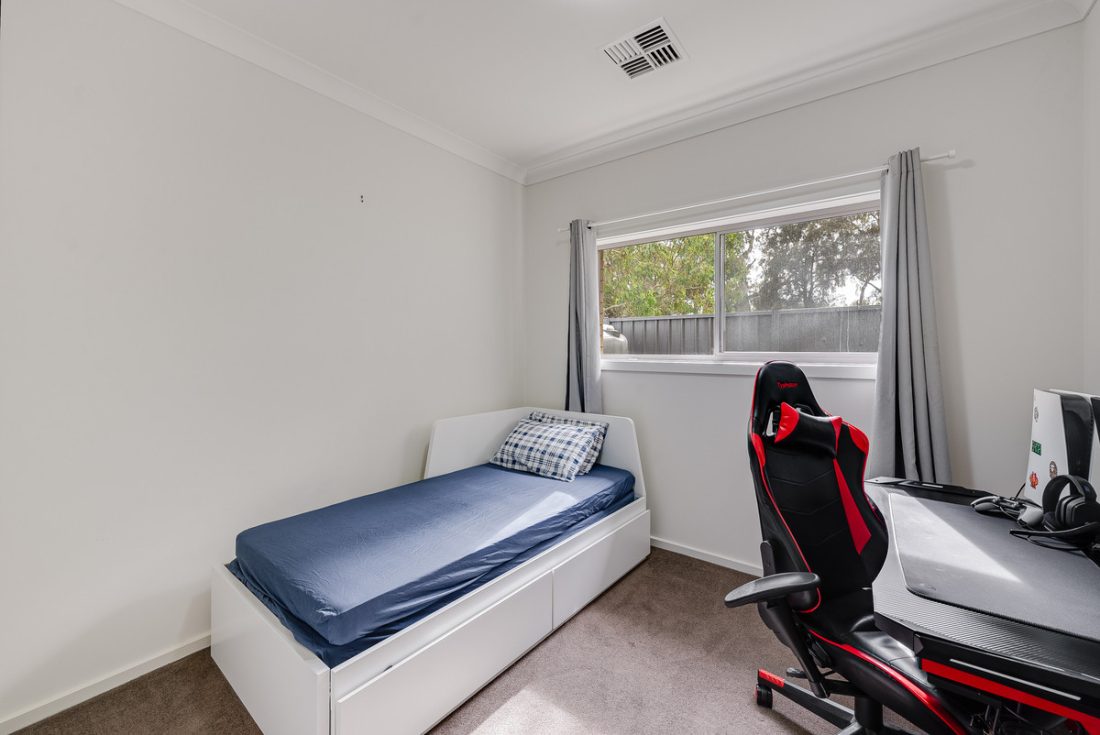 Back inside, three well-sized bedrooms feature plush carpet and plenty of natural light. The master bedroom enjoys a walk-in robe and ensuite, providing a true retreat for the homeowners. Bedroom 2 is equipped with a built-in robe for convenient storage.