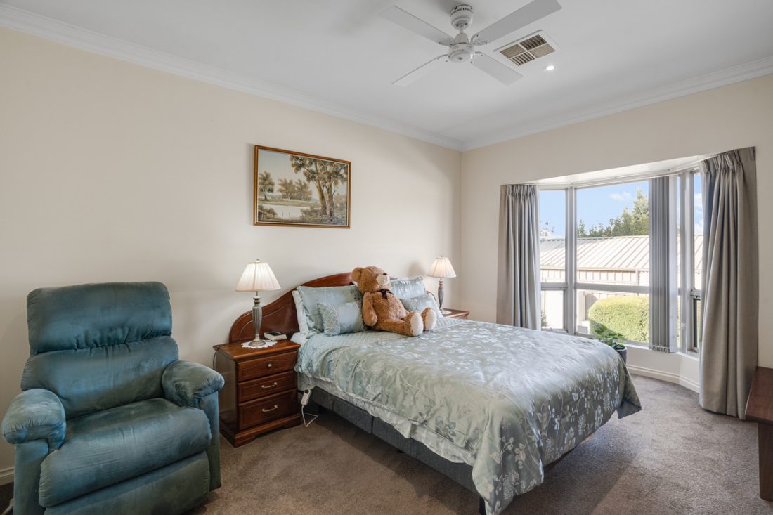 Back inside, you’ll find three generously proportioned bedrooms, each adorned with plush carpeting. The master bedroom stands out with its walk-in robe, ensuite, ceiling fan, and a charming bay window. The remaining guest bedrooms are well-equipped with built-in wardrobes, offering effortless storage solutions.