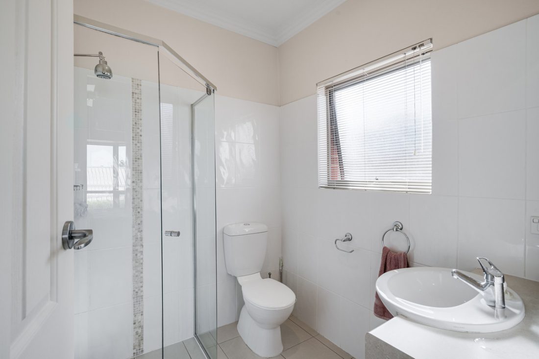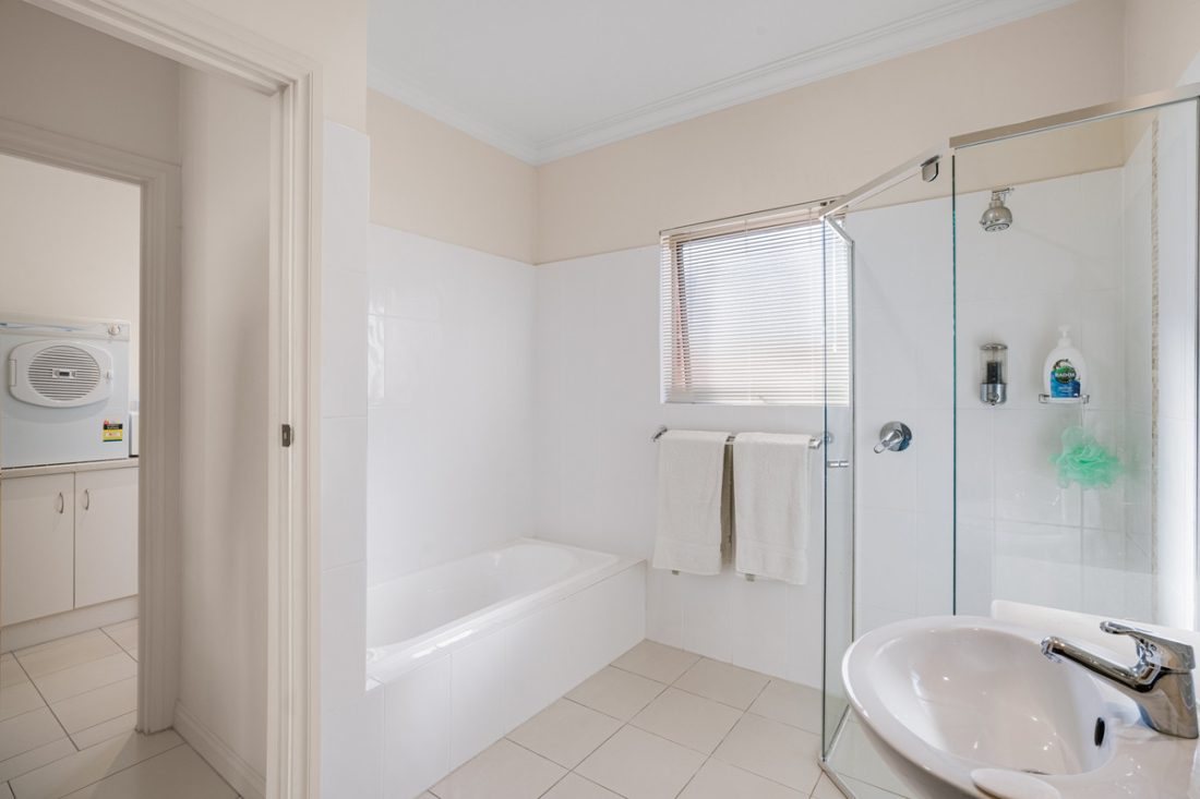 As you journey back inside, you’ll discover three spacious bedrooms, each featuring plush carpeting. The main bedroom stands out with its walk-in robe, ensuite, ceiling fan and charming bay window. The remaining guests bedroom are equipped with built-in wardrobes for convenient storage.
