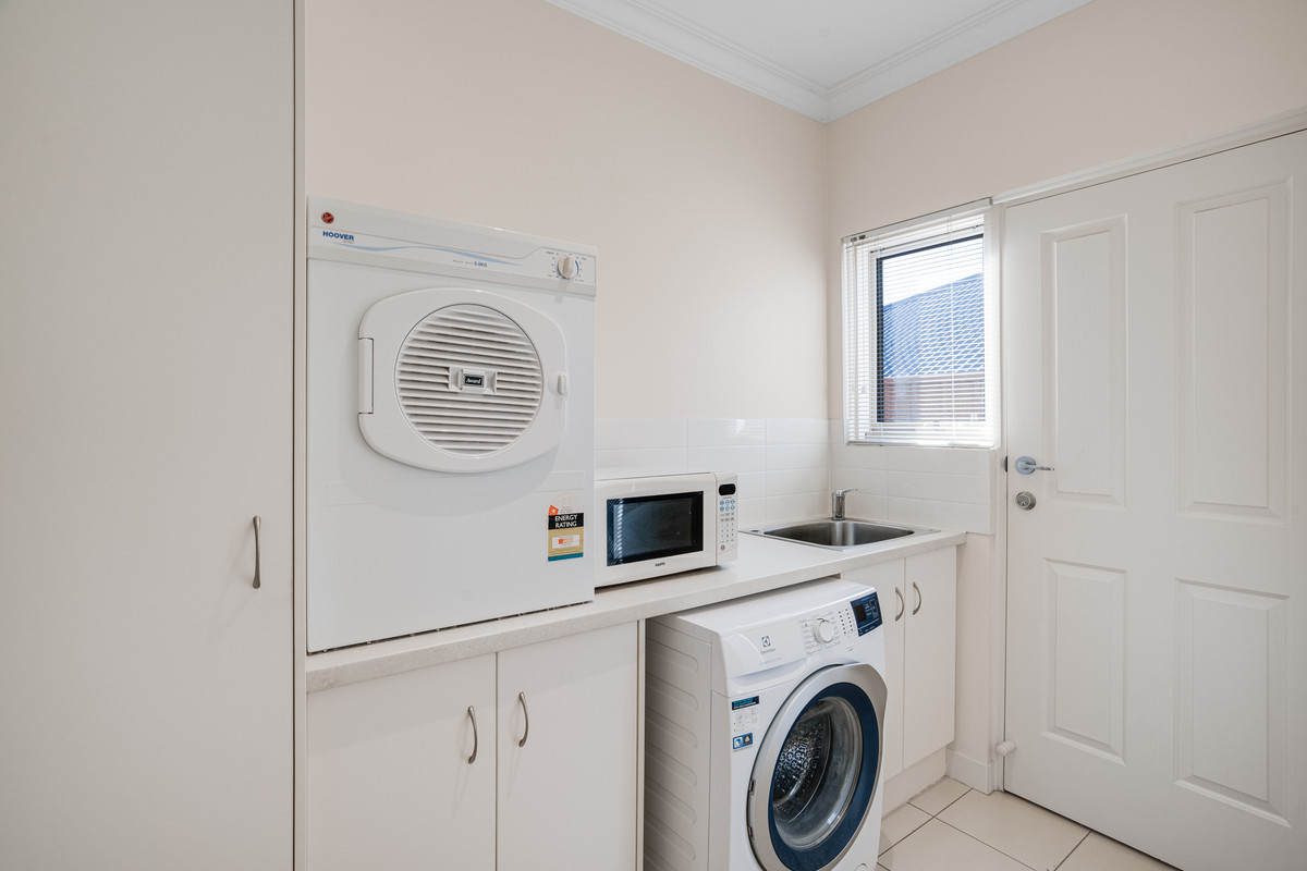 Large glass sliding doors effortlessly connect this area to the outdoor undercover verandah, creating an ideal space for hosting gatherings. The fully paved, private yard ensures you can spend less time on maintenance and more time basking in the sunshine, plus a handy tool shed for storage.