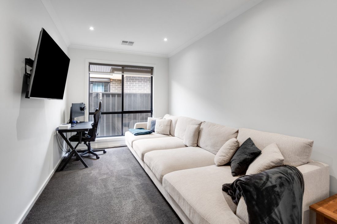Completing the floor plan is a versatile secondary living space, ideal for giving the kids their own area or for hosting cozy movie nights.