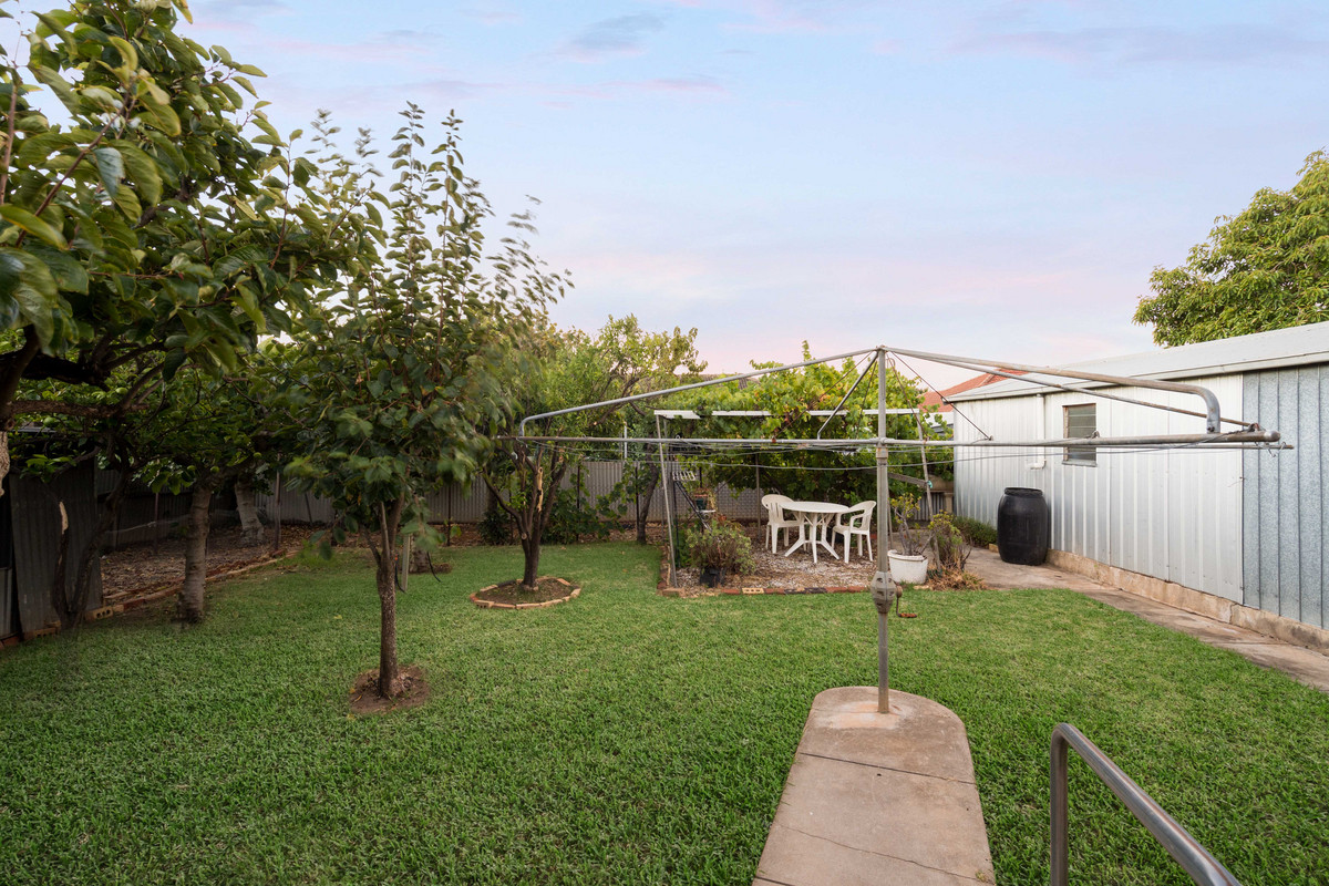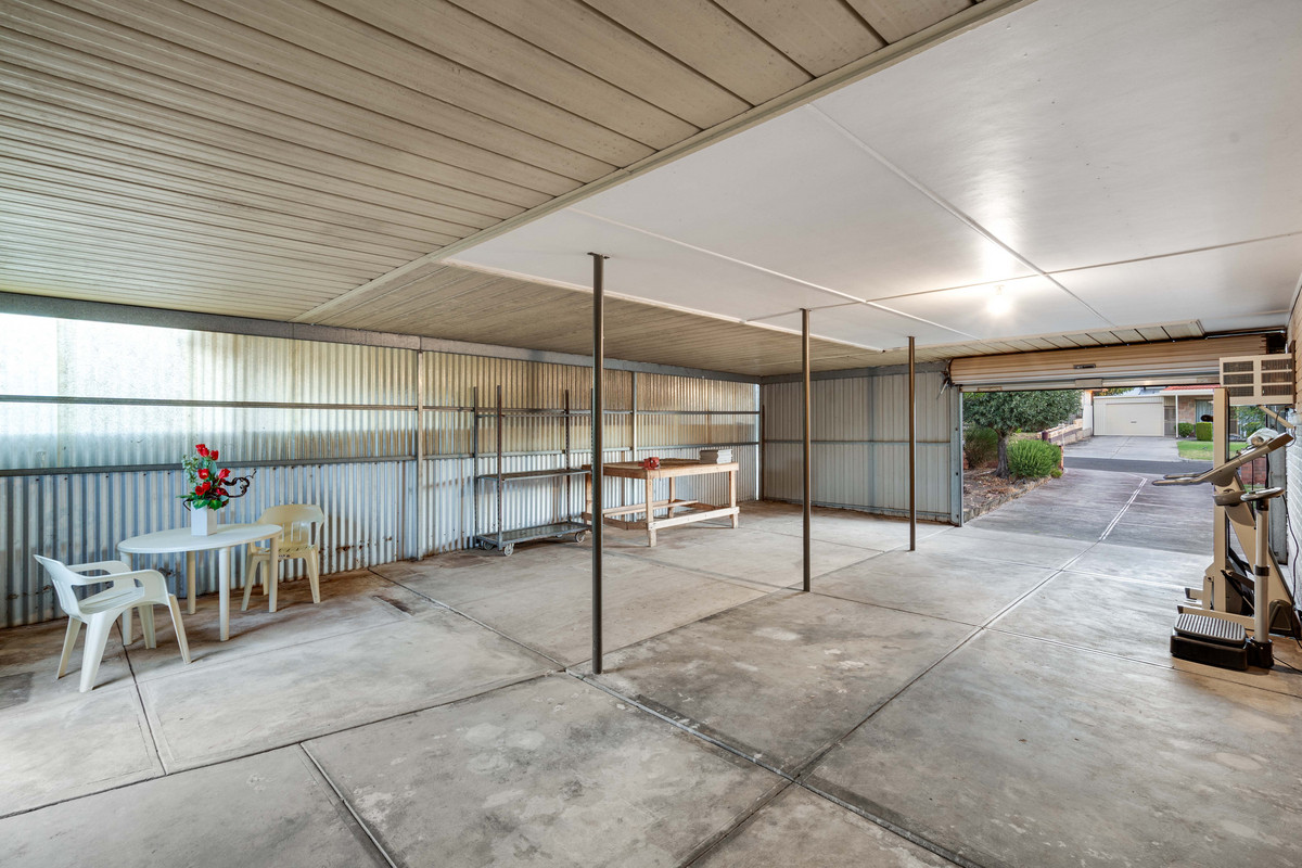 Outdoors, space is certainly not in short supply. An expansive verandah with a solid concrete base creates a durable and versatile entertaining zone, ready for weekend gatherings or relaxed afternoons outdoors. Extensive garaging accommodates up to four vehicles, complemented by two storage areas, a pergola, shed and clothesline. Established gardens are enriched by an abundance of fruit and olive trees, offering both shade and seasonal produce for those who appreciate a flourishing backyard. Whether you’re dreaming of a thoughtful renovation or exploring longer-term possibilities, there is clear scope here to enhance and add value, subject to the necessary consents.