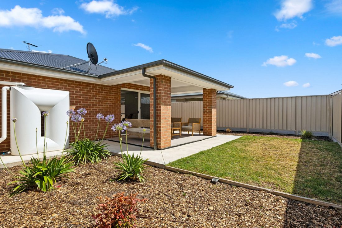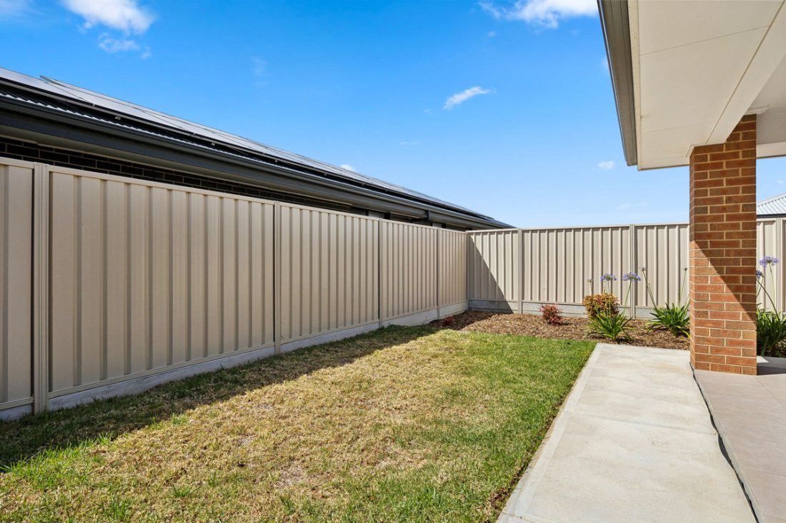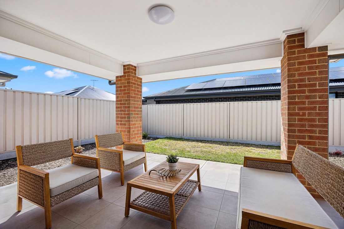Adjacent to the kitchen, the dining and living areas enjoy the same abundant natural light, creating a bright and airy atmosphere. Glass sliding doors invite you to step outside, seamlessly connecting the indoor and outdoor spaces. The well-sized yard is ideal for entertaining, featuring an undercover alfresco overlooking a neat stretch of lawn.