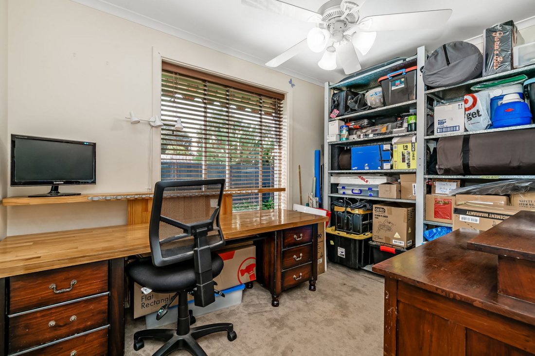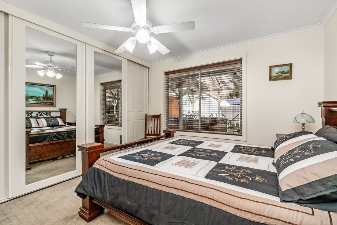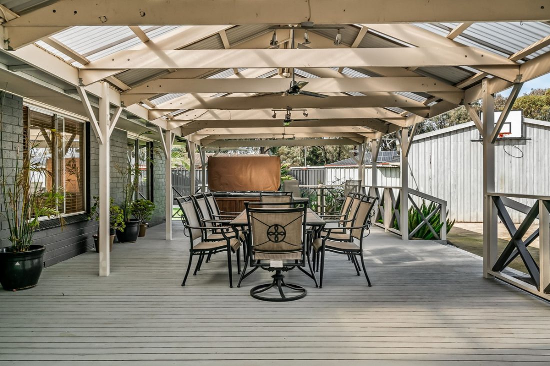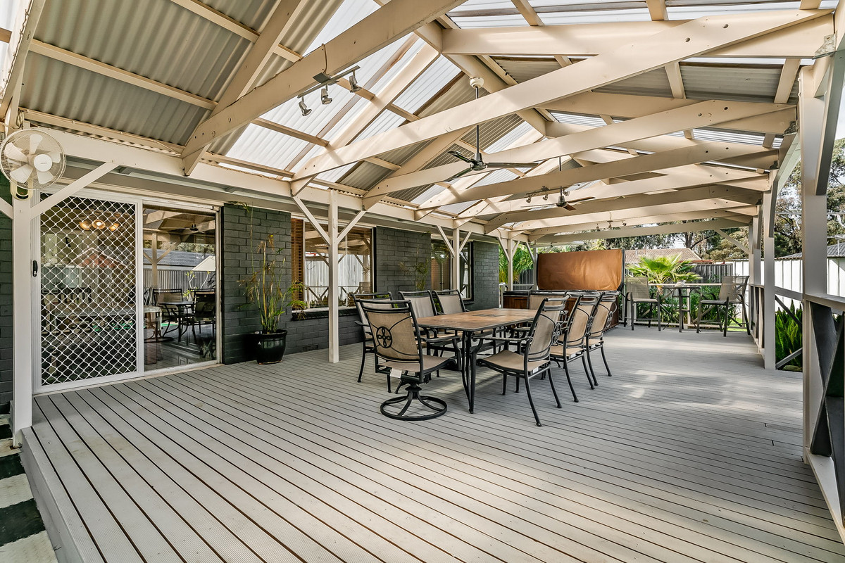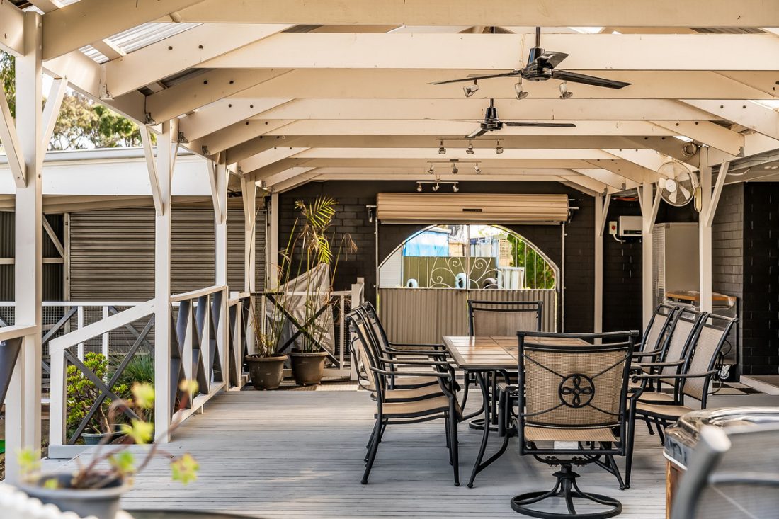 Stepping outside, the generously sized backyard takes the spotlight. A large undercover deck with ceiling fans provides an enviable setting for entertaining friends and family.