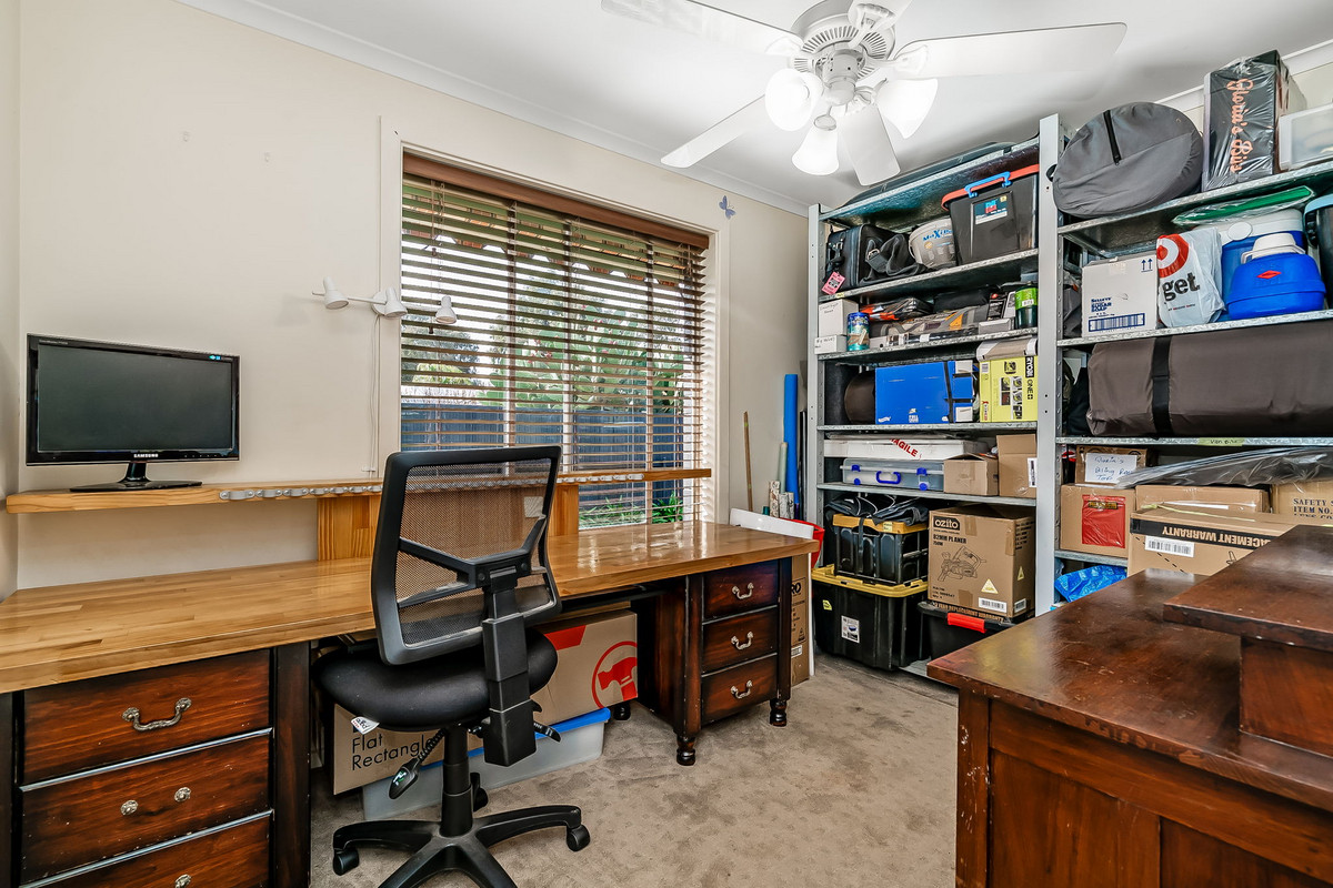 Completing the floor plan is a formal dining room or potential fourth bedroom or study, a versatile space ready to suit your needs, with glass sliding doors leading to the exterior.