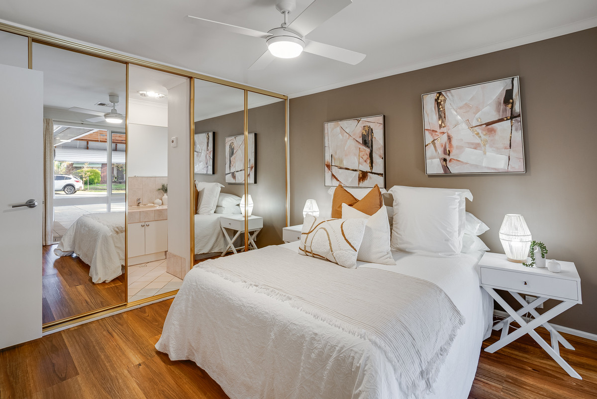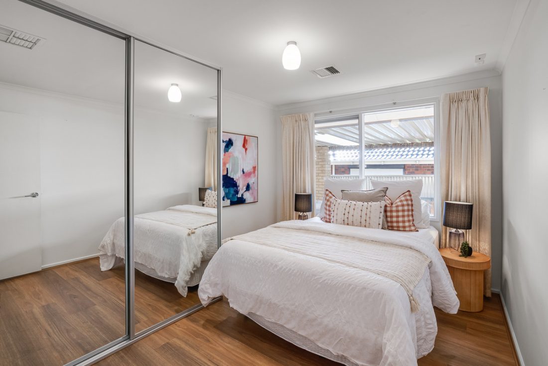 Accommodating for families, the property comprises three bedrooms and two bathrooms. The main suite is a private oasis, featuring plenty of space, two built-in robes, and a well-appointed ensuite. The additional two bedrooms offer ample space, built-in robes, and timber-look flooring, ensuring every family member enjoys their own personal retreat.