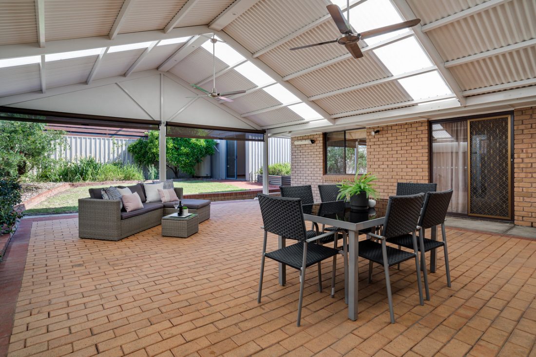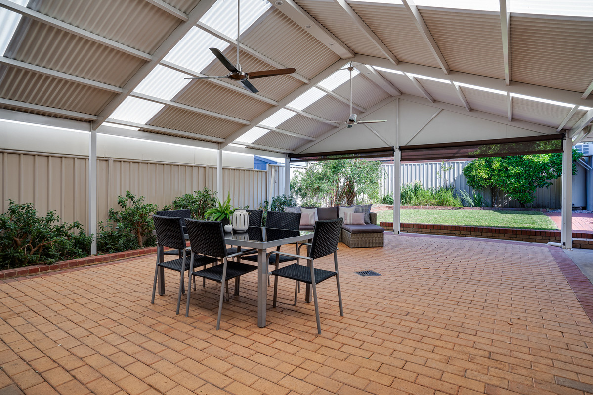 – Large outdoor undercover entertaining area with ceiling fans and blinds
