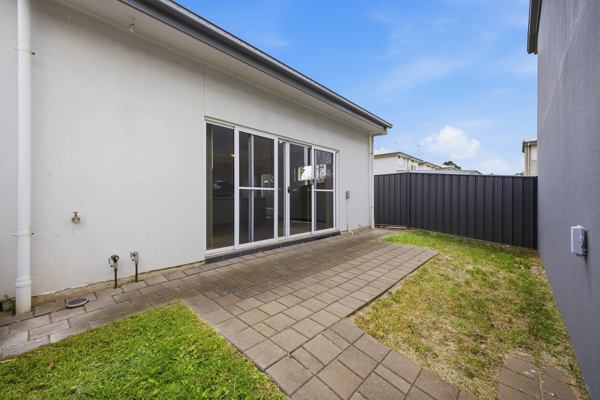 Glass sliding doors open to a neat, low maintenance backyard with tidy pavers and a green lawn, creating an easy space for outdoor dining, morning coffee or a few pots of greenery. It is simple, practical and ready for you to make your own.