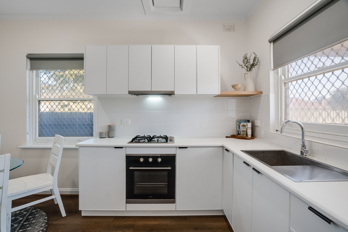 An open kitchen and meals area beckon, featuring stainless-steel appliances including an oven and gas cooktop, complemented by crisp-white cabinetry and ample bench space. This versatile space caters to daily culinary activities and offers a cozy spot for family gatherings.