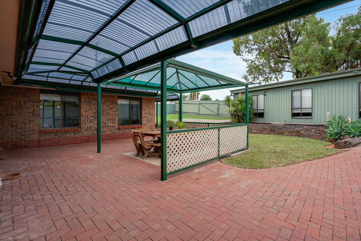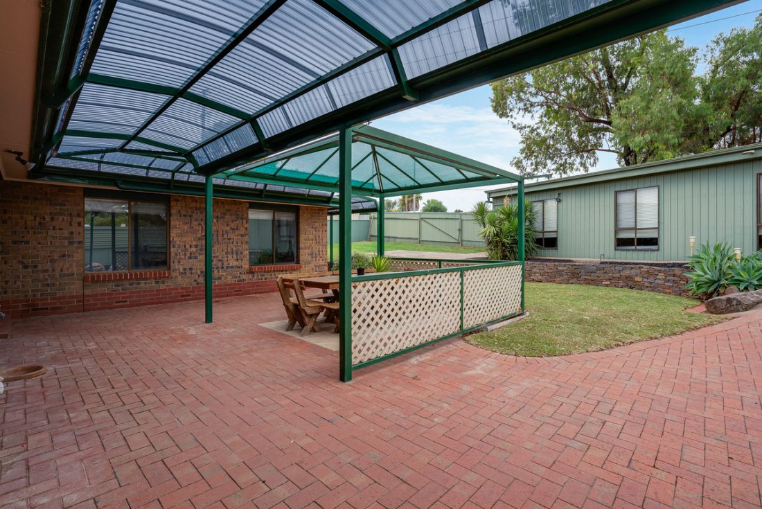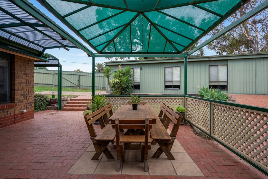 Step outside to discover the expansive paved outdoor living area, complete with a gazebo-style dining spot, perfect for alfresco gatherings. A large fully lined separate rumpus room with air conditioning offers versatility as a games room, outdoor kitchen area, or additional bedroom.