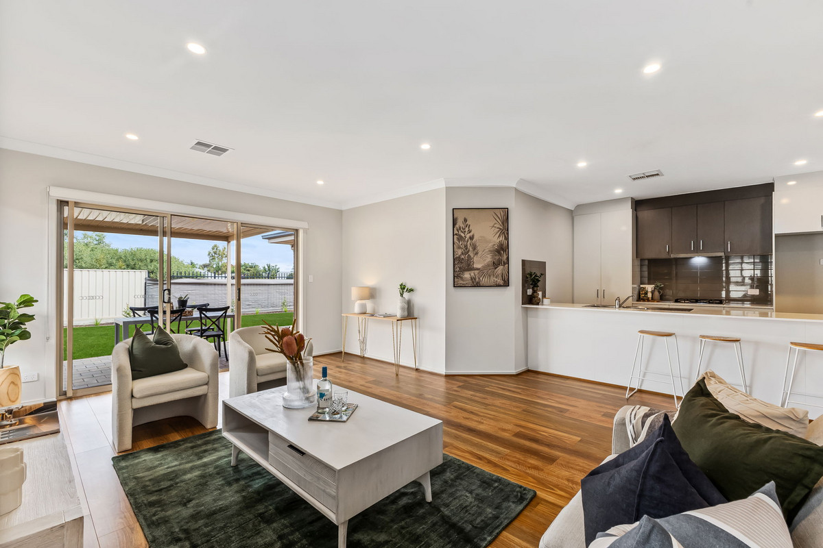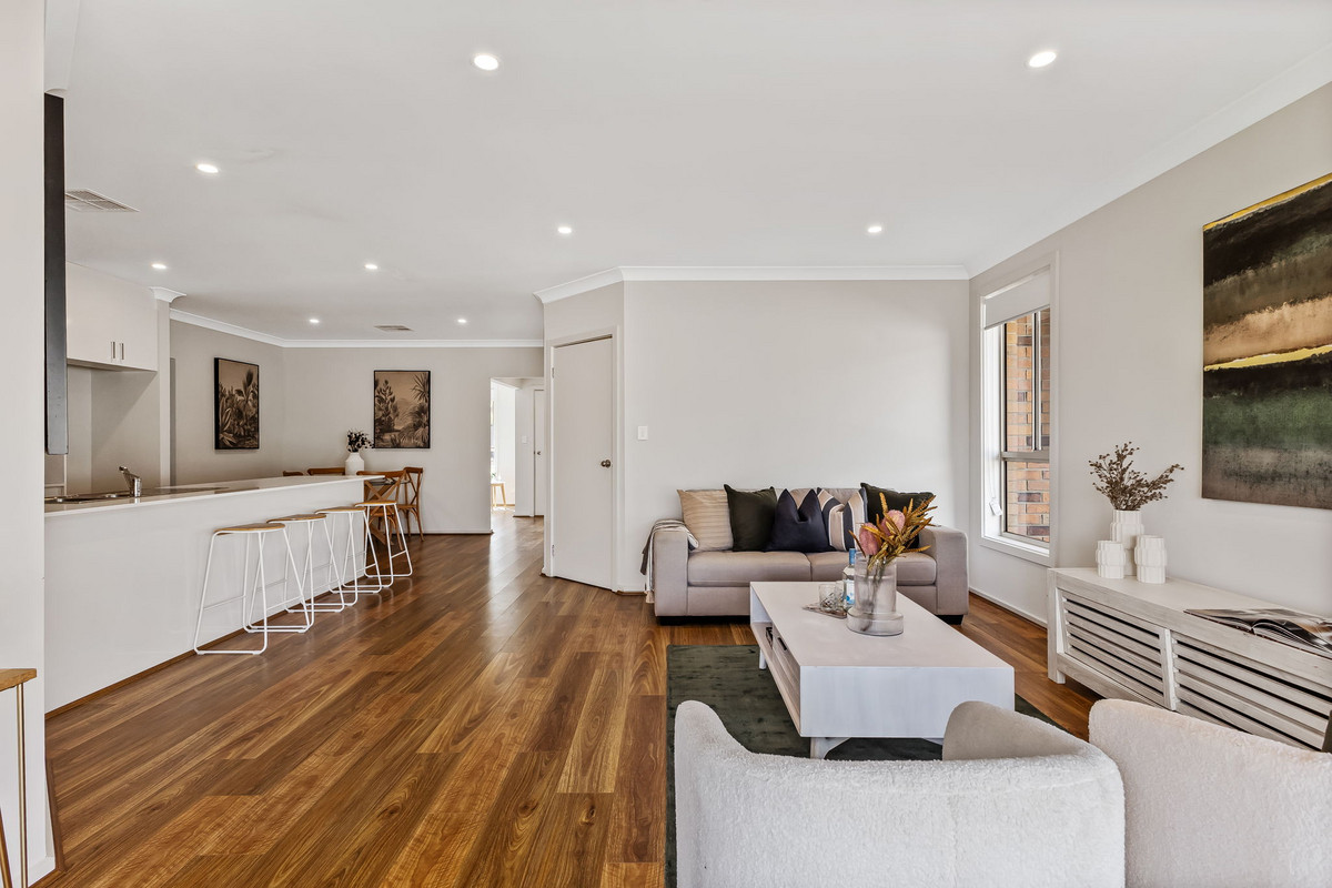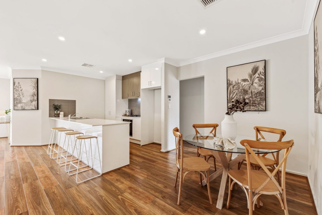 Inside, a sunny front living area offers a quiet spot to relax—perfect for reading, working from home, or claiming as the ‘no toys allowed’ zone. Head further in and you’ll find the heart of the home: an open-plan kitchen, dining and living area that’s light, bright and ready to host it all.