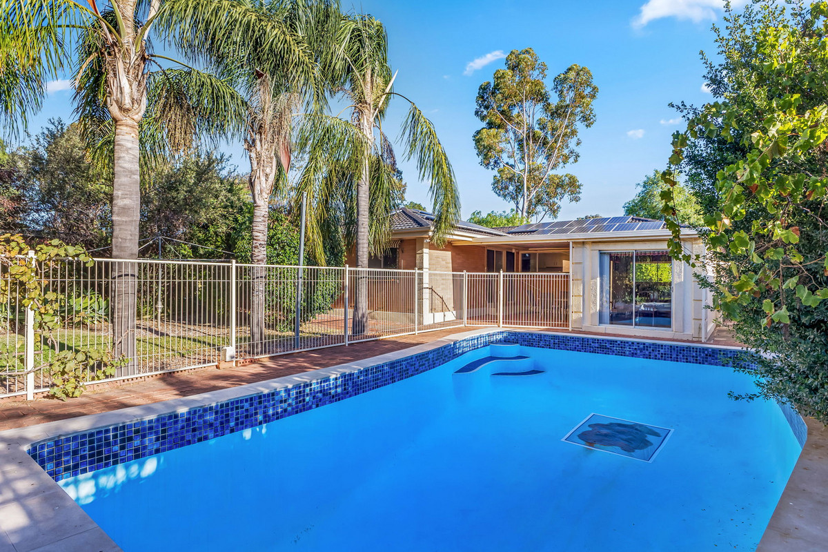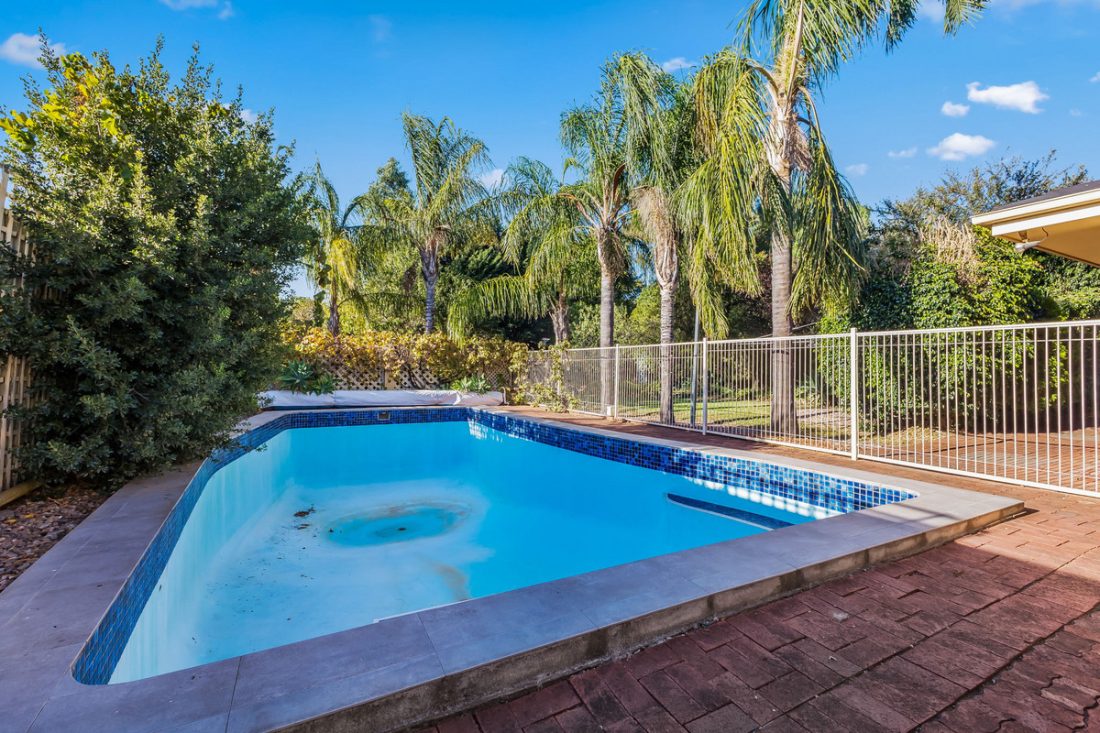 Glass sliding doors reveal an expansive undercover alfresco, setting the stage for weekend barbecues, long lunches, or just unwinding outdoors year-round. And let’s not forget the backyard — a standout feature that stretches wide and deep, offering room for the kids, pets, or your big vision for the block. Sitting proudly here is an enormous swimming pool, just waiting for someone to restore it to its former glory and transform it back into the summertime showstopper it was meant to be.