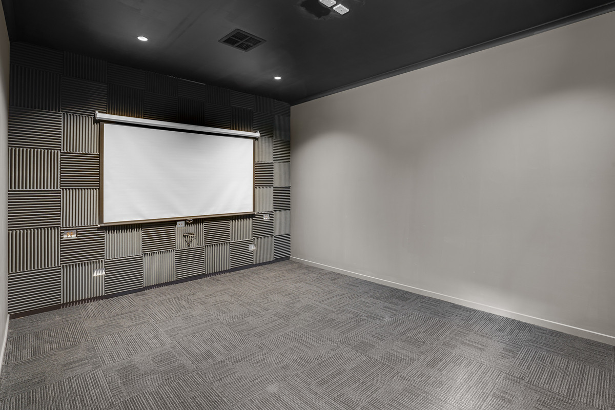 – Theatre room with sound proofing, dark walls & carpeting