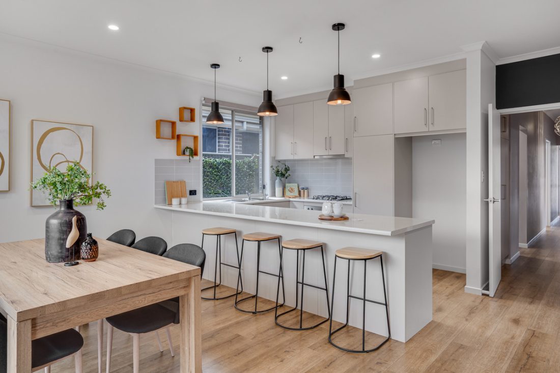 Upon entry, you’ll be greeted by the elegant allure of timber-look floating floors that gracefully extend throughout the entire home. The heart of the residence opens up into an expansive, open-plan kitchen, meals, and living area. The well-appointed kitchen is a culinary haven, featuring stainless-steel appliances, a gas cooktop, and an abundance of cabinetry, catering to both the novice cook and the seasoned chef.