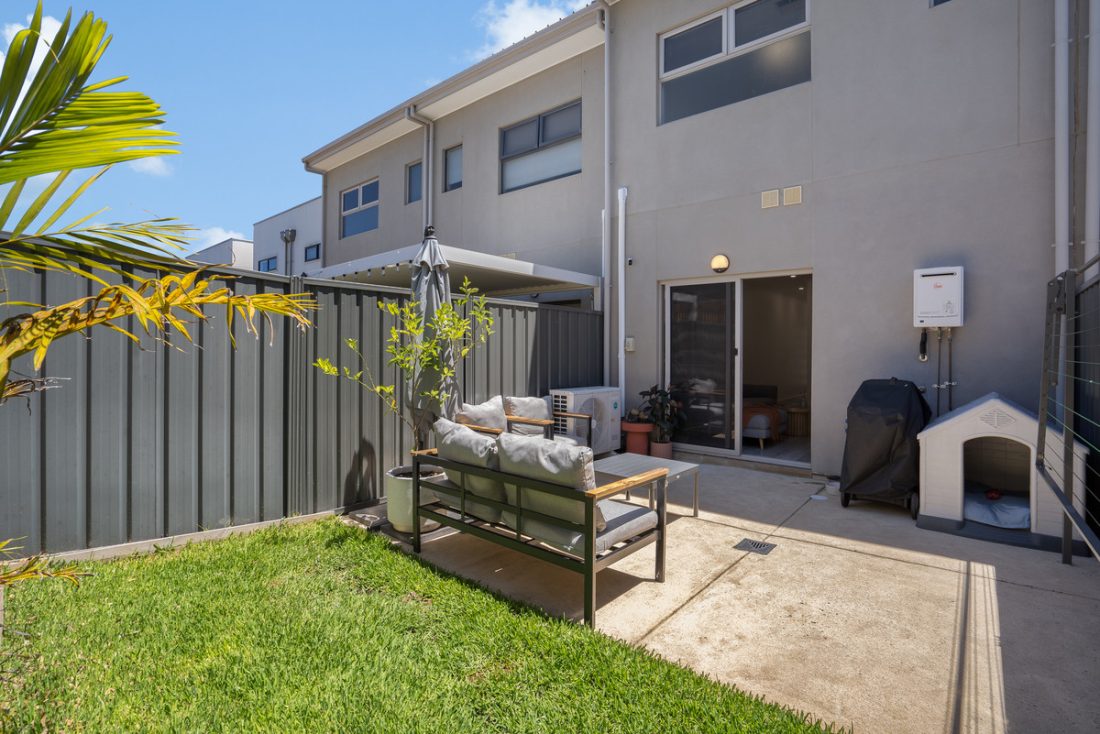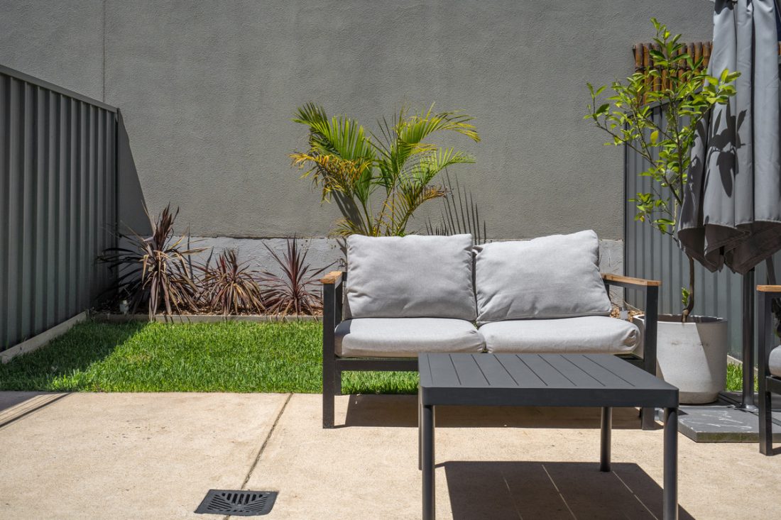 The seamless flow between the open living area and the outdoor space is facilitated by a glass sliding door, providing the perfect setting for both indoor and outdoor entertaining. The concreted outdoor dining area and a grassed spot make this space ideal for relaxation and recreation, catering to all members of the family, including your furry friends.