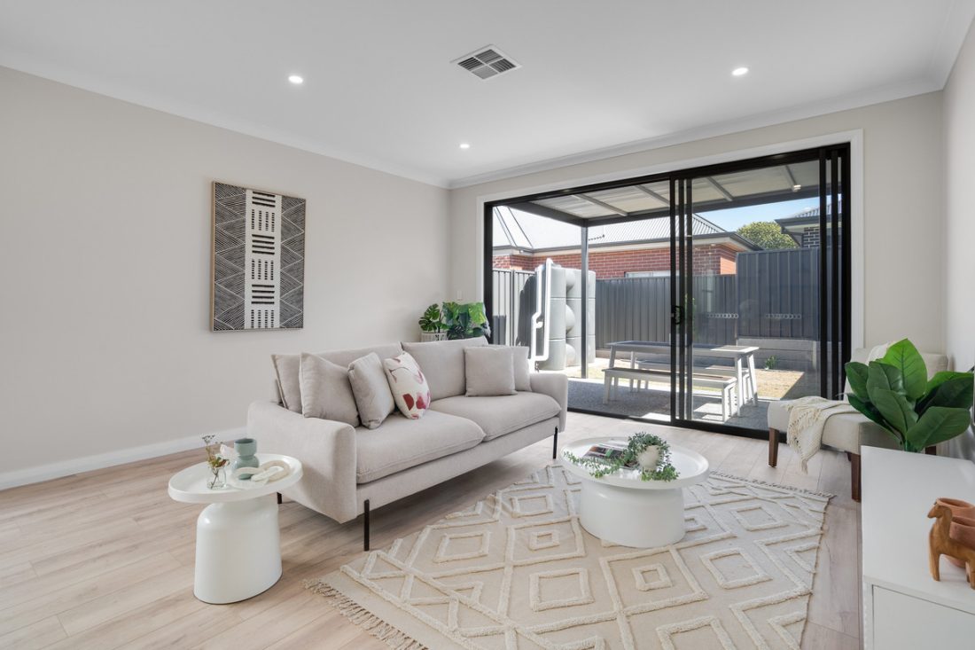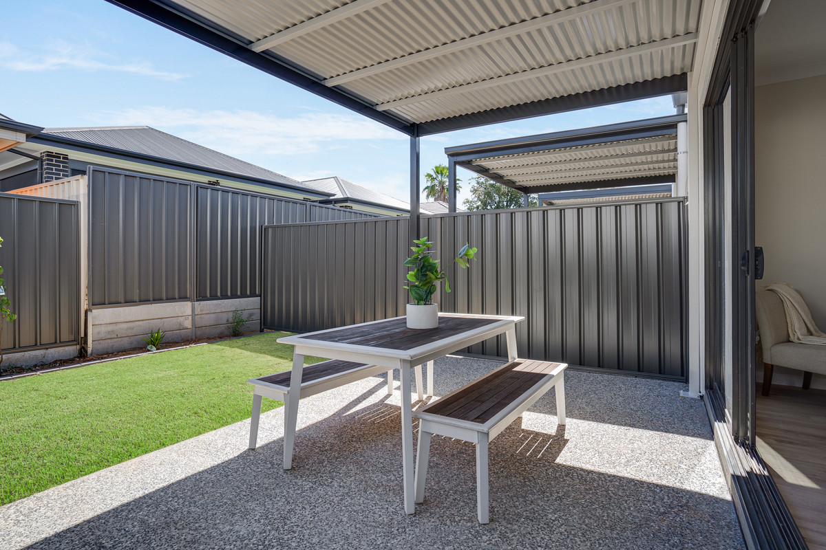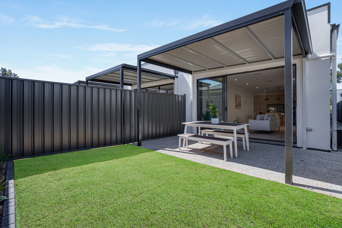 Glass sliding doors effortlessly connect the living space to the outdoors, revealing a low-maintenance area designed for relaxation and minimal upkeep. An undercover verandah creates the perfect spot for year-round enjoyment.