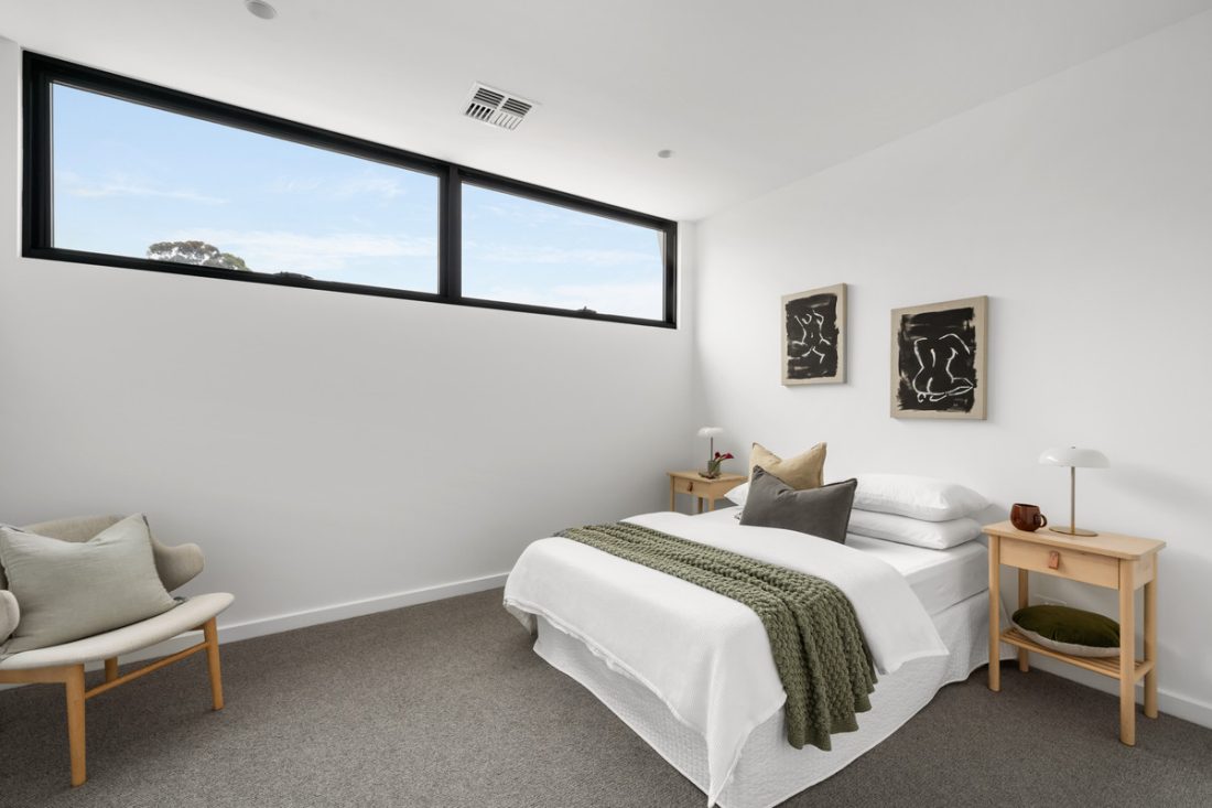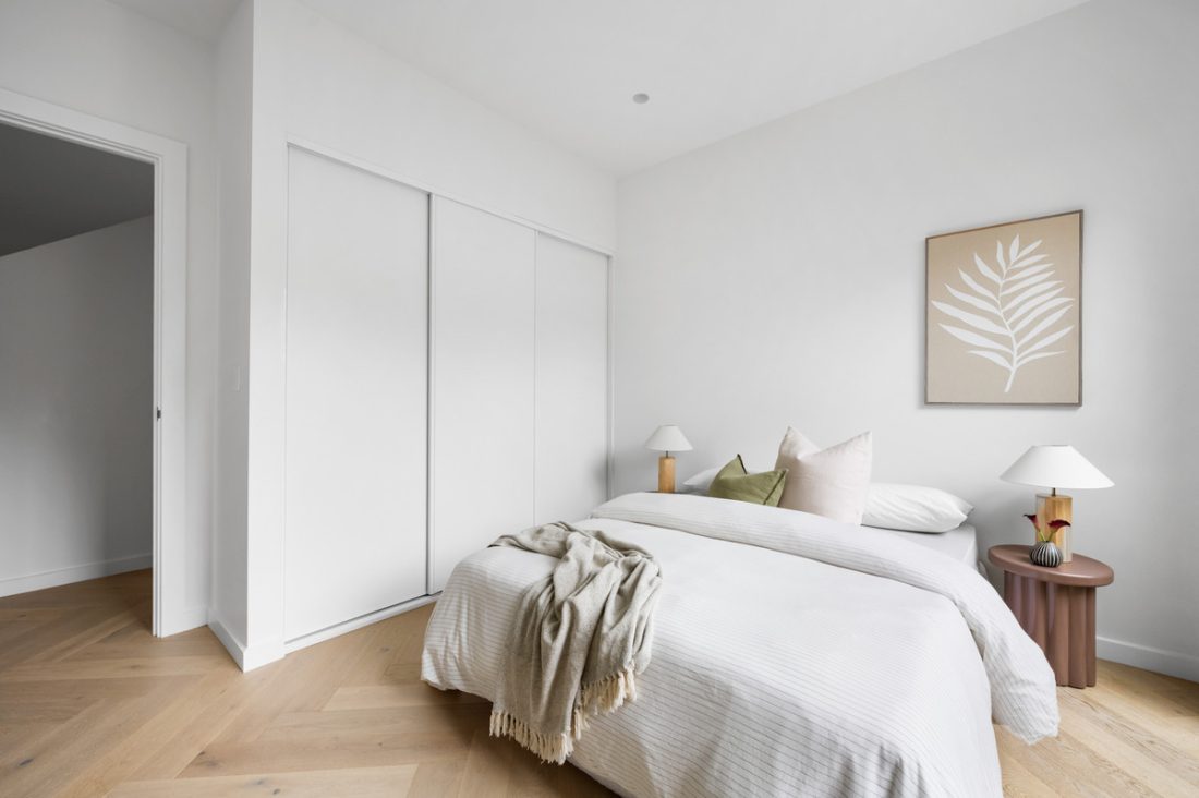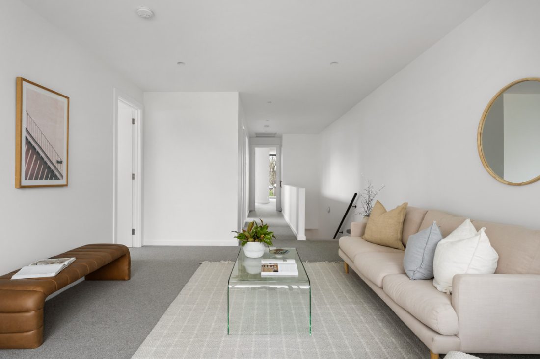 Privately positioned down a quiet lane, the striking façade sets the tone from the moment you arrive. Think oversized windows, bold textures, and instant street appeal. Step inside and you’re met with high ceilings, oak herringbone floors, downlights throughout, and an effortless sense of light and space – the kind that makes you slow down and take it all in.